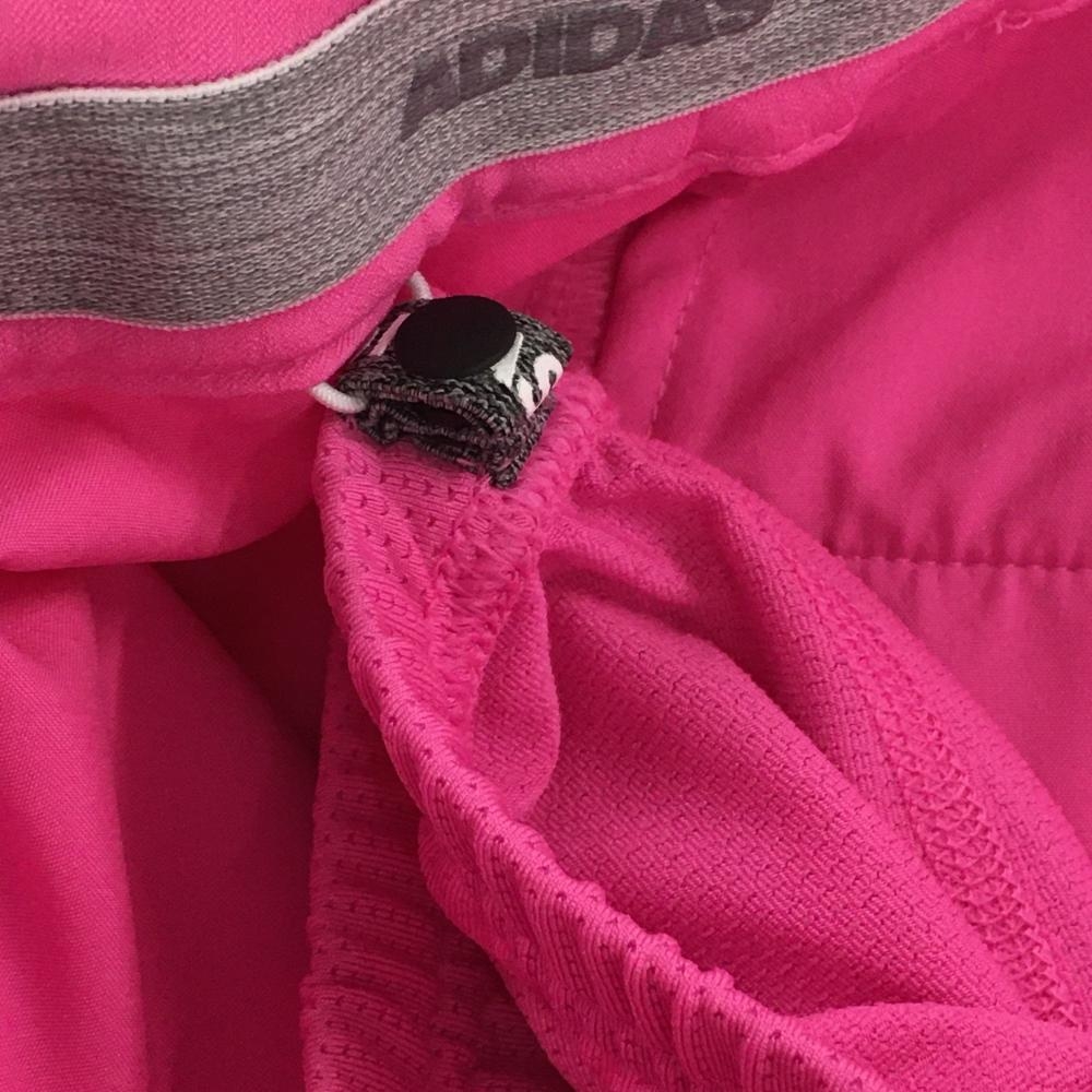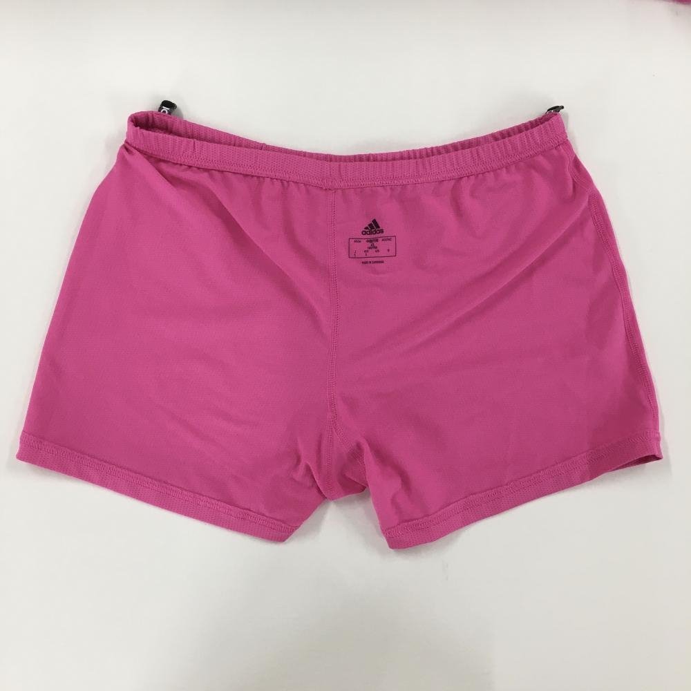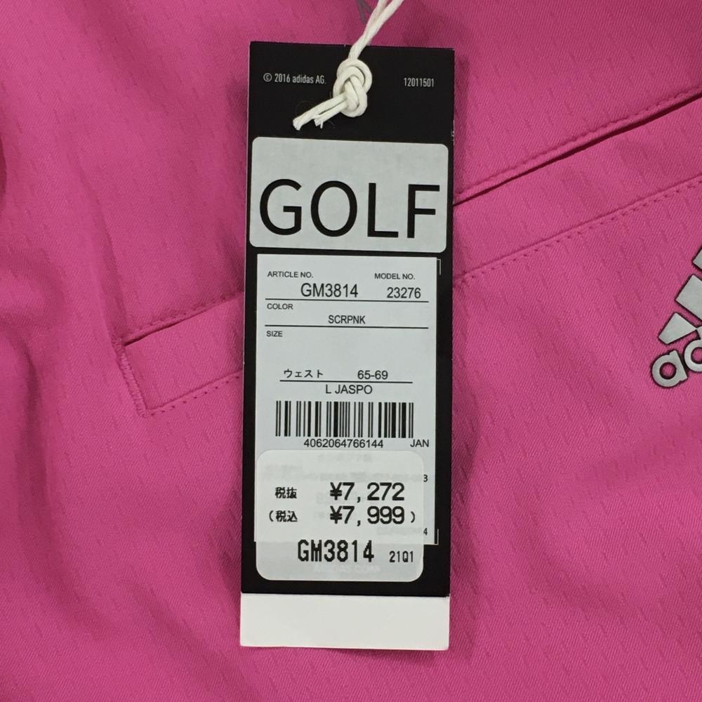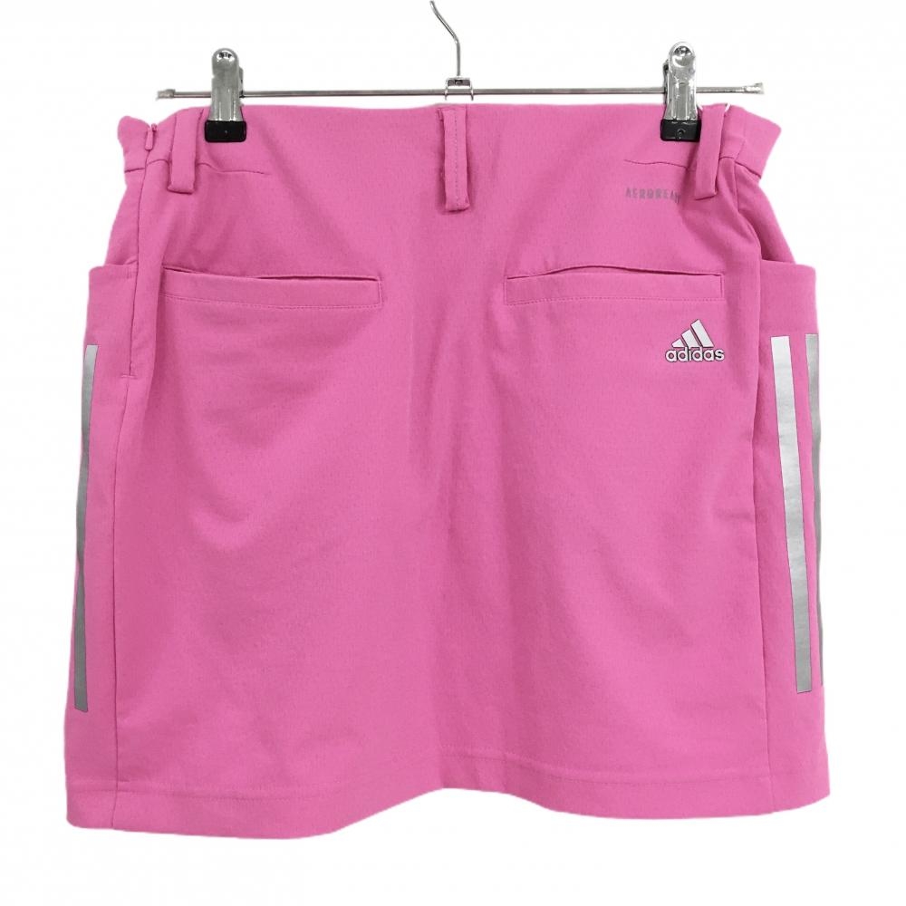 【新品】アディダス スカート ピンク×シルバー サイド3ライン インナーパンツ付 ストレッチ レディース L ゴルフウェア adidas