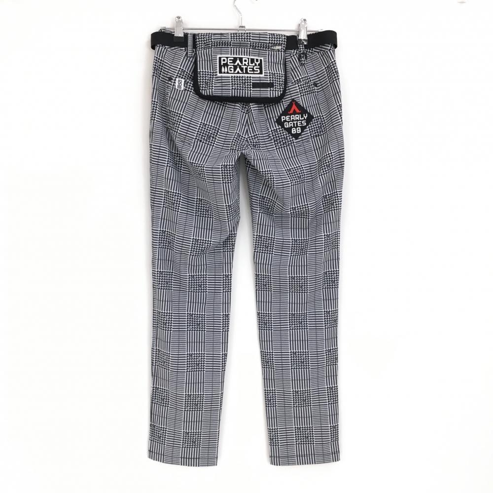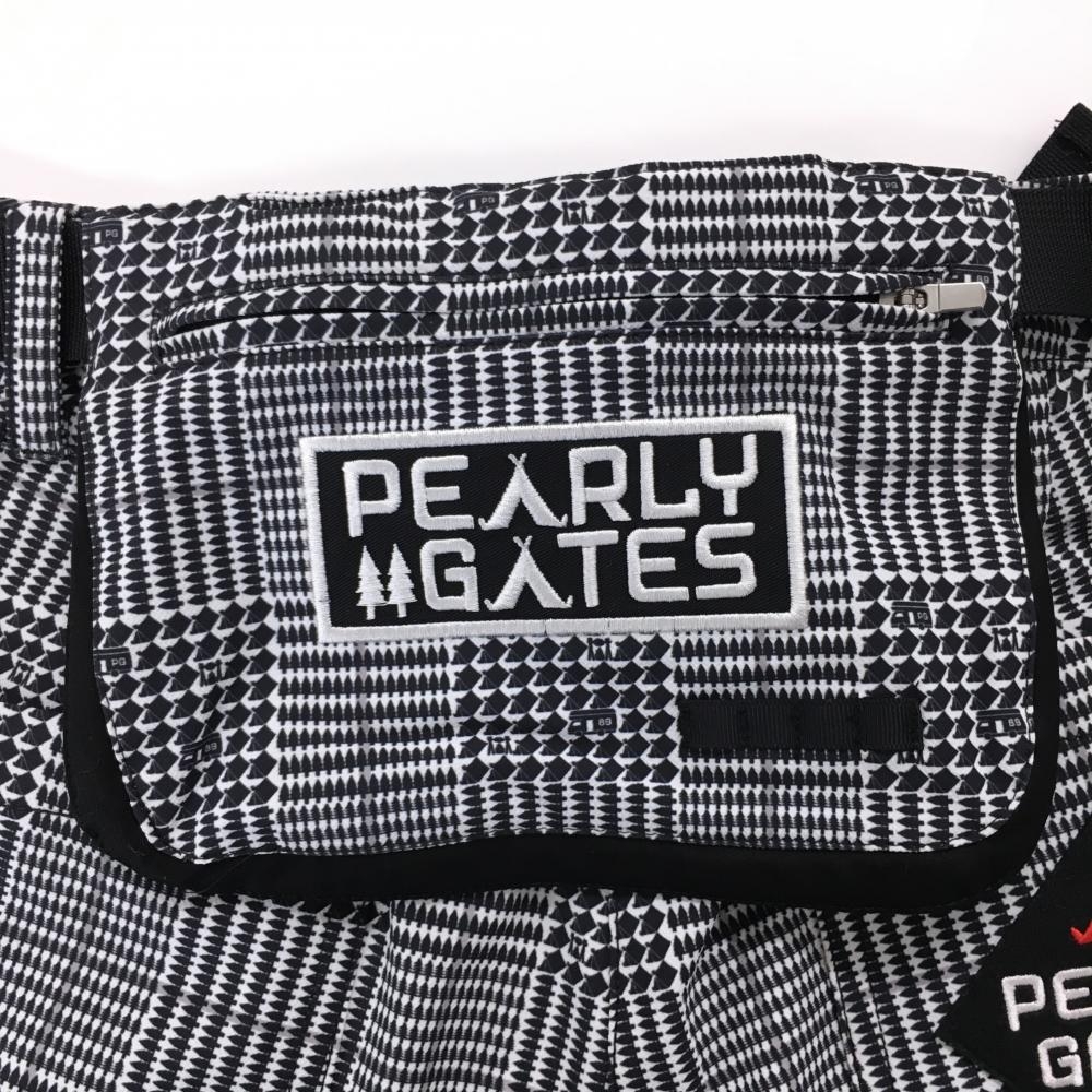 【超美品】パーリーゲイツ パンツ 白×黒 グレンチェック風 韓国モデル ベルトポーチ付 30周年 レディース 2(L) ゴルフウェア PEARLY GATES
