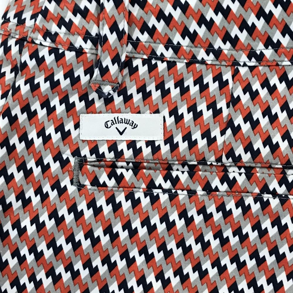 【美品】キャロウェイ パンツ オレンジ×ネイビー ジグザグ総柄 ストレッチ レディース SS ゴルフウェア Callaway