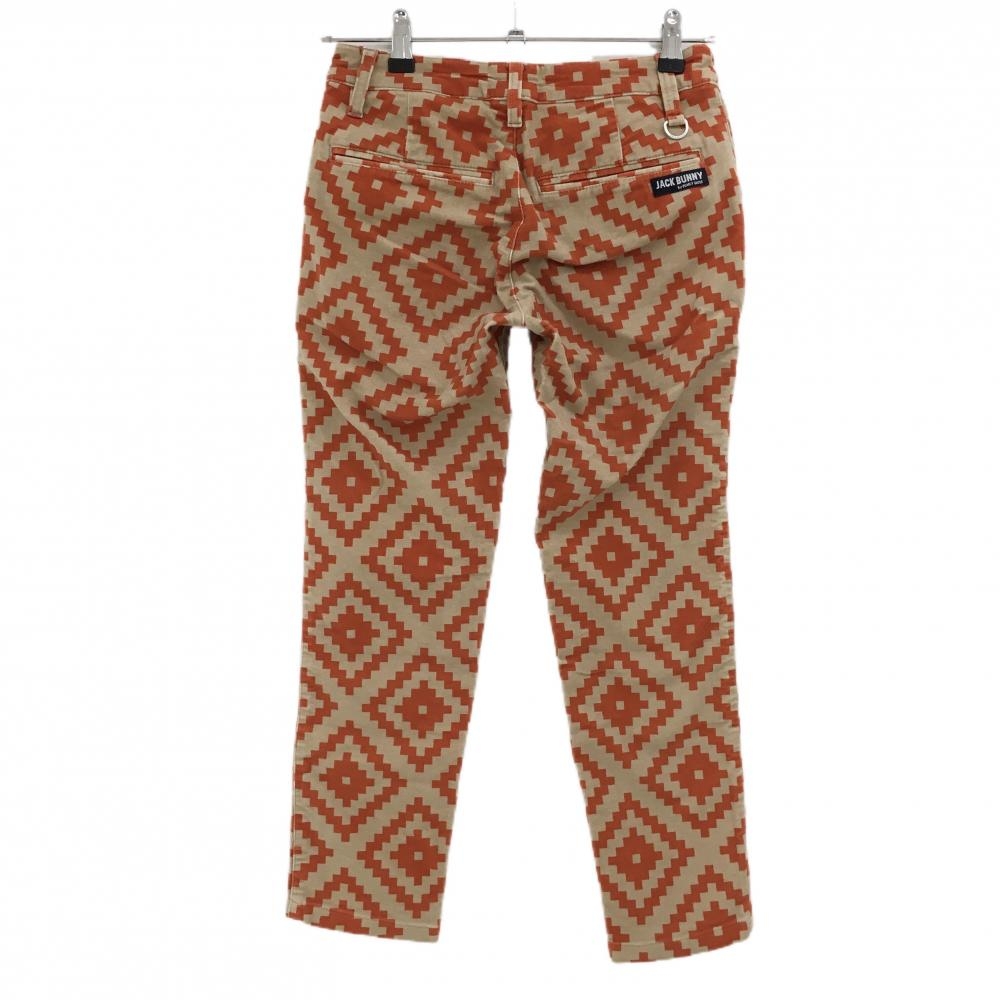 【美品】ジャックバニー パンツ ライトブラウン×オレンジ 総柄 表微起毛 ストレッチ レディース 0(S) ゴルフウェア Jack Bunny