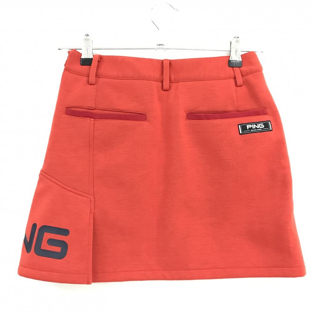 【超美品】ピン スカート レッド ロゴプリント 裏起毛 ストレッチ レディース SS ゴルフウェア PING