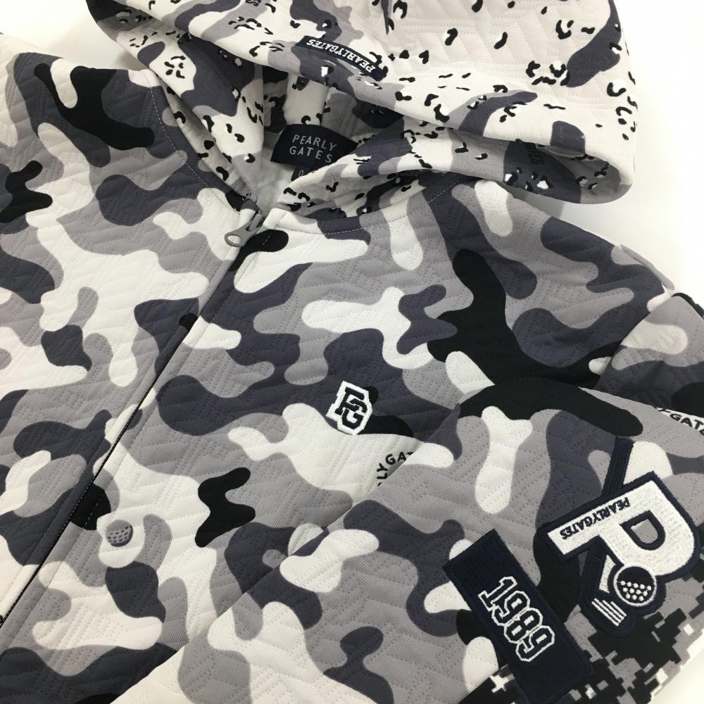 【美品】パーリーゲイツ ジャケット グレー系×ネイビー 総柄 カモフラ調 迷彩 キルティング レディース 0(S) ゴルフウェア PEARLY GATES