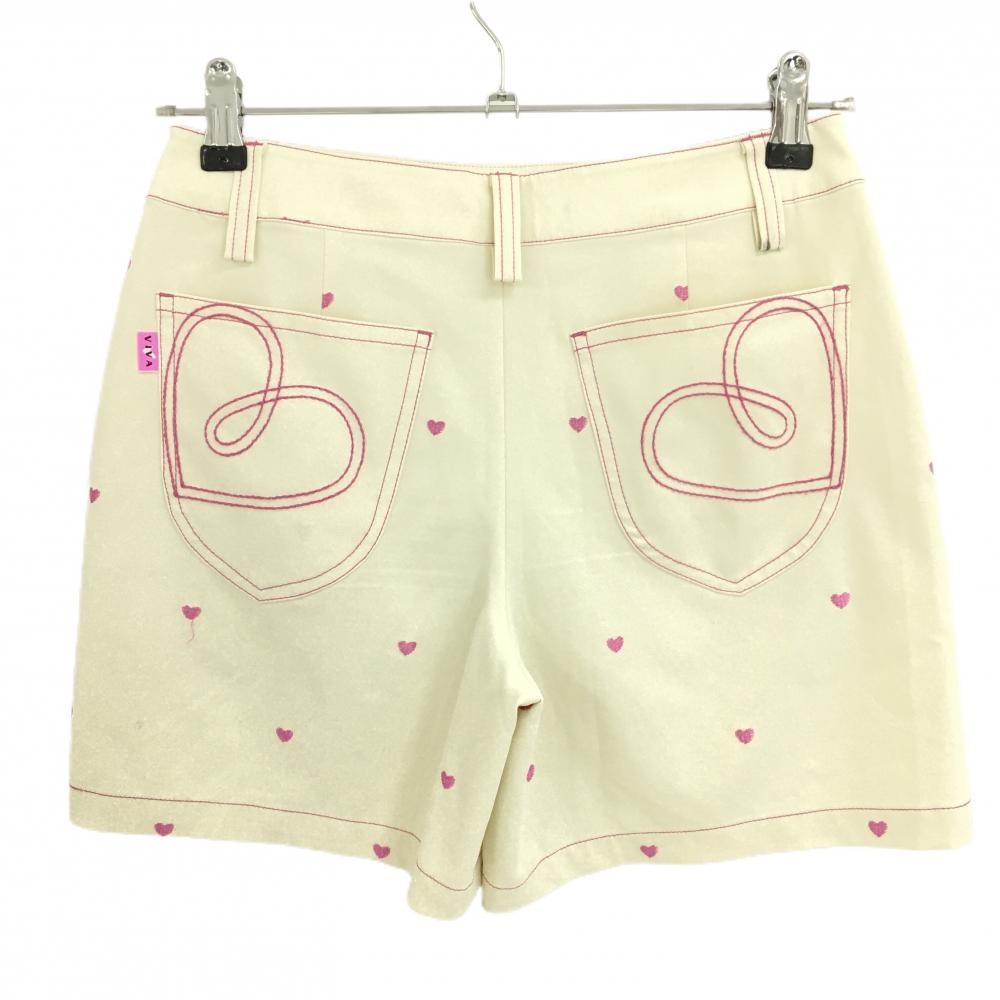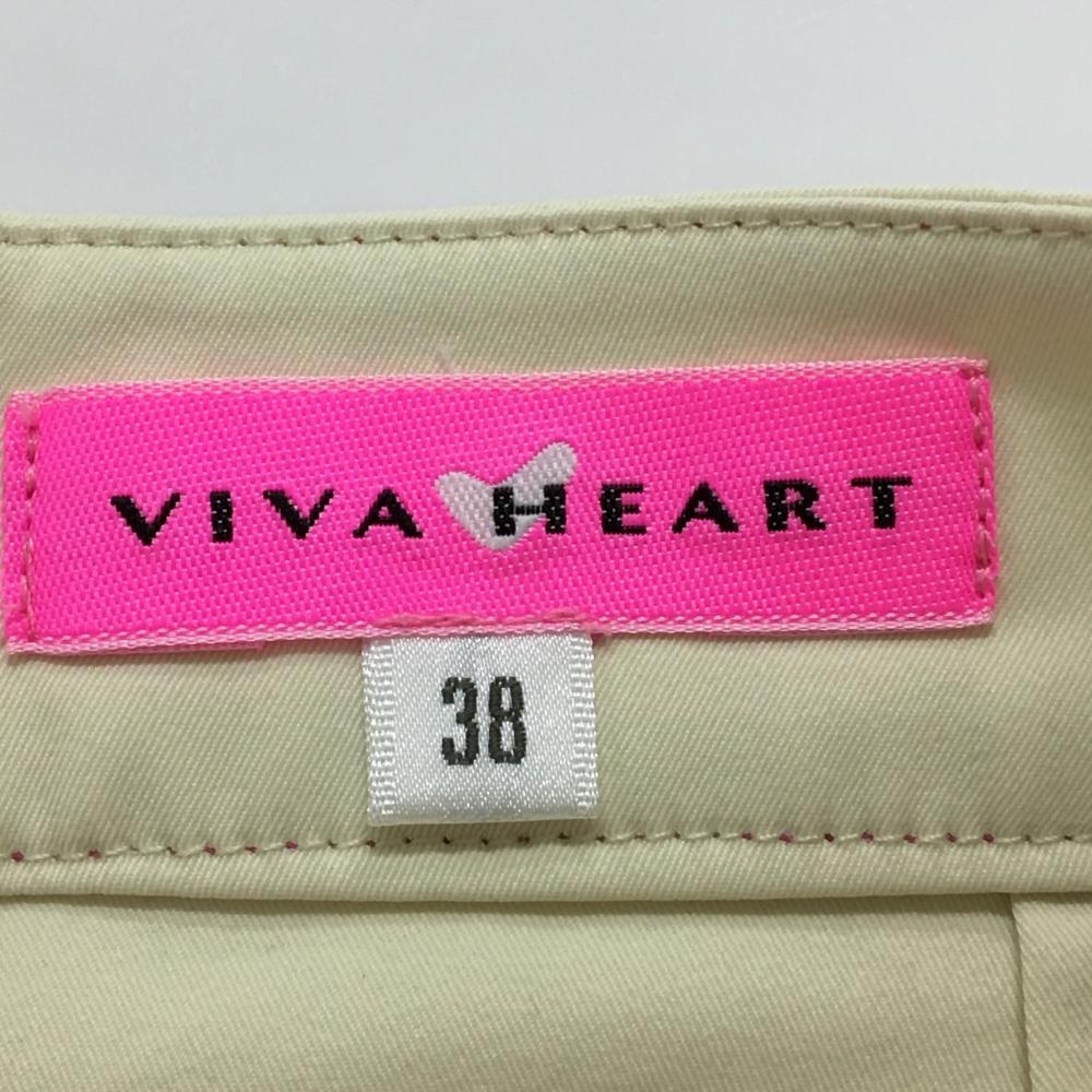 【超美品】ビバハート キュロットスカート アイボリー×ピンク ハート総柄 レディース 38(S) ゴルフウェア VIVA HEART
