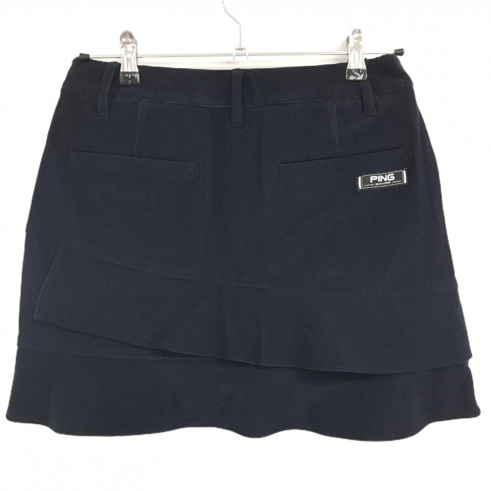 【超美品】ピン スカート ネイビー トリコット コーデュロイ ロゴ刺しゅう レディース L ゴルフウェア 2023年モデル PING