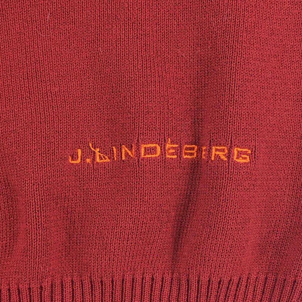 【超美品】ジェイリンドバーグ ニットカーディガン レッド ショート丈 ロゴ刺しゅう レディース XS ゴルフウェア J.LINDEBERG