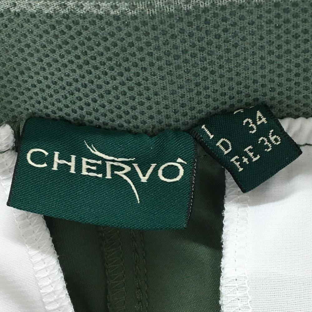 【超美品】シェルボ パンツ ライトカーキ ロゴ刺しゅう ウエスト一部ゴム ストレッチ レディース XS/4 ゴルフウェア CHERVO