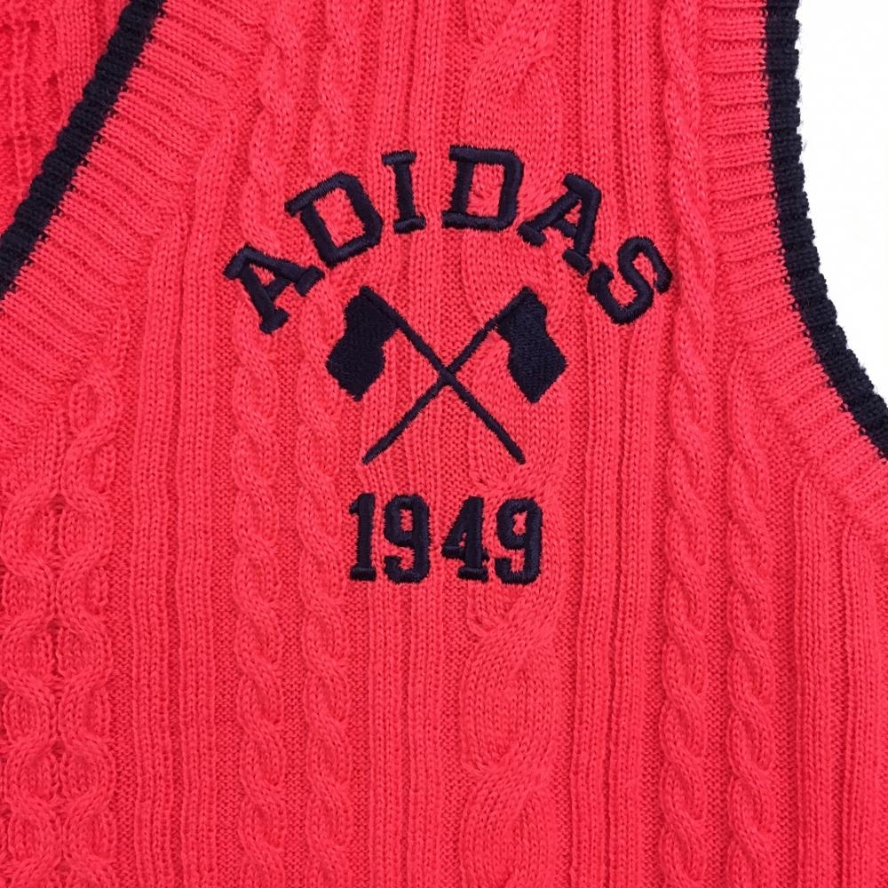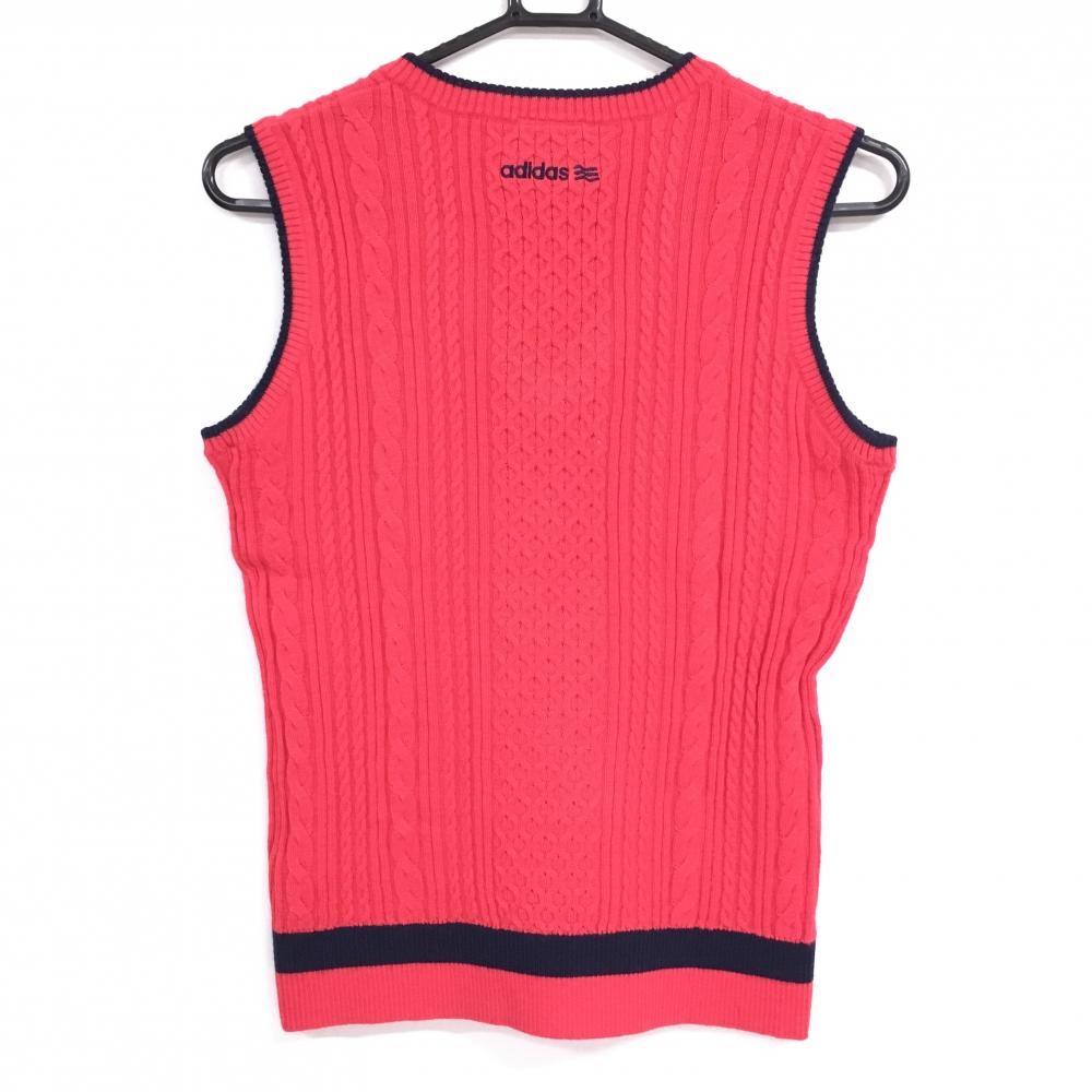 【超美品】アディダス ニットベスト レッド系 ケーブル編み ウール混 レディース S/P ゴルフウェア adidas