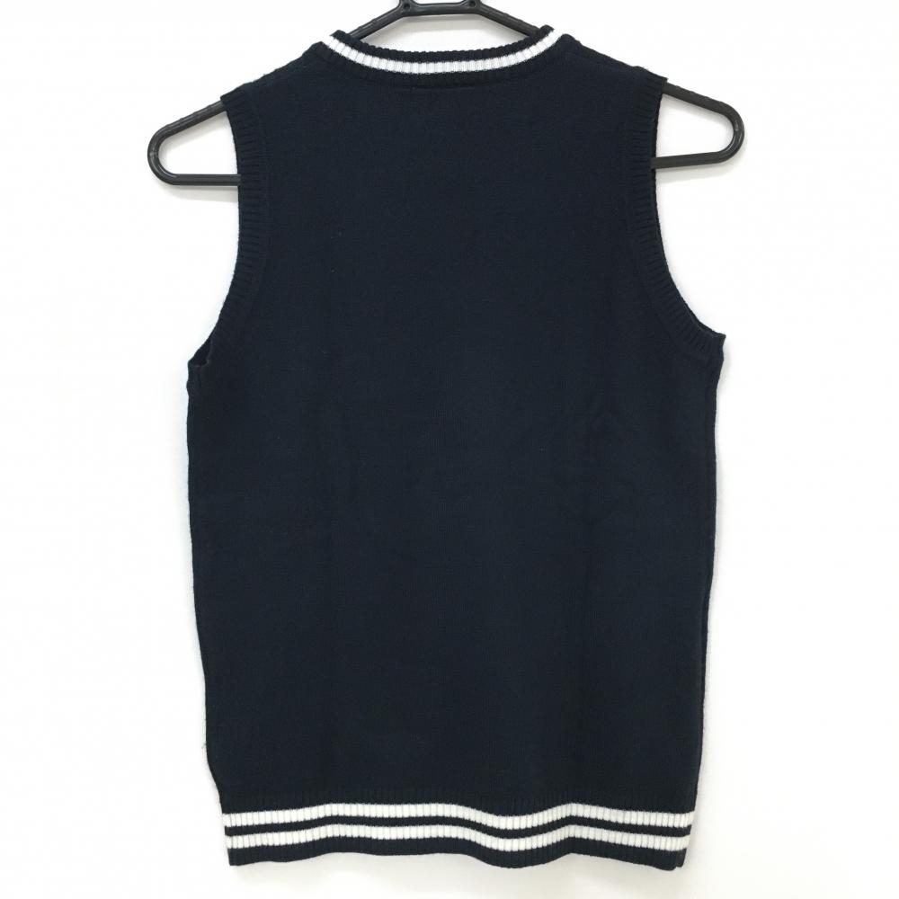 【超美品】アディダス ニットベスト ネイビー×白 前面ストライプ Vネック レディース S/P ゴルフウェア adidas