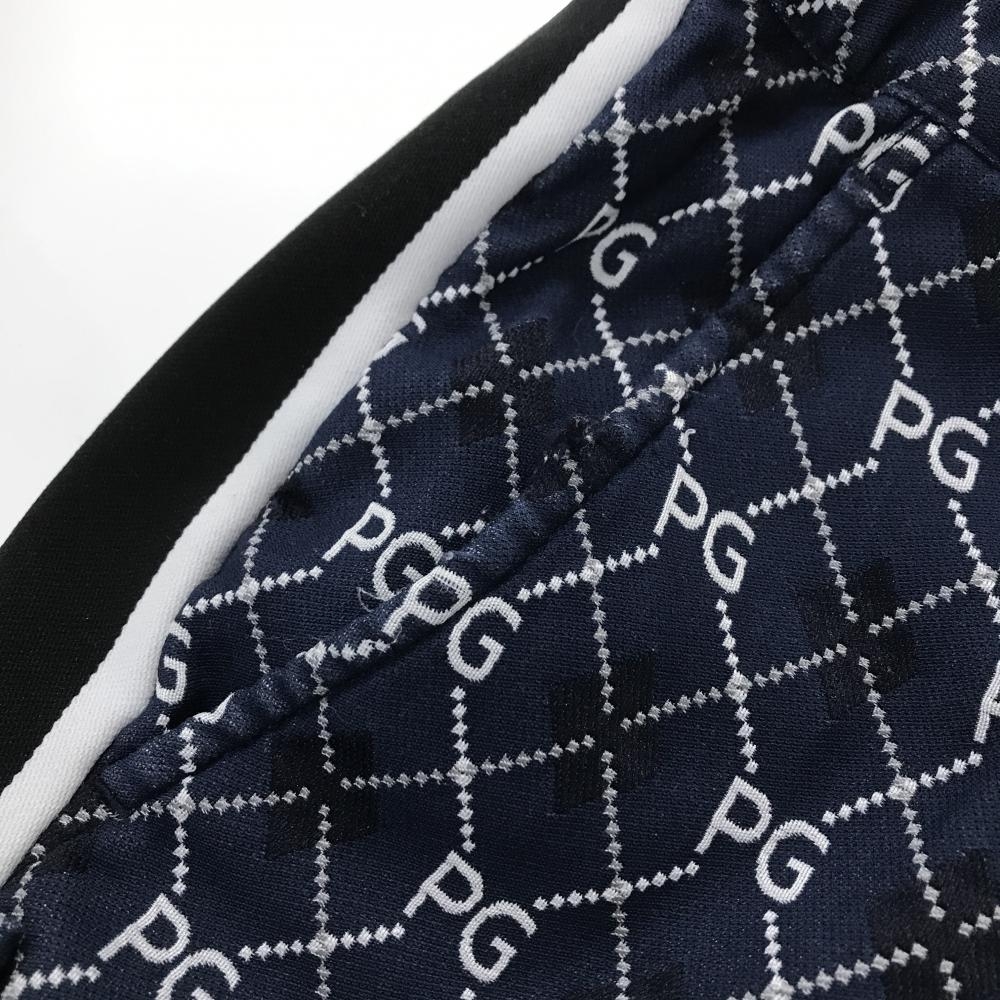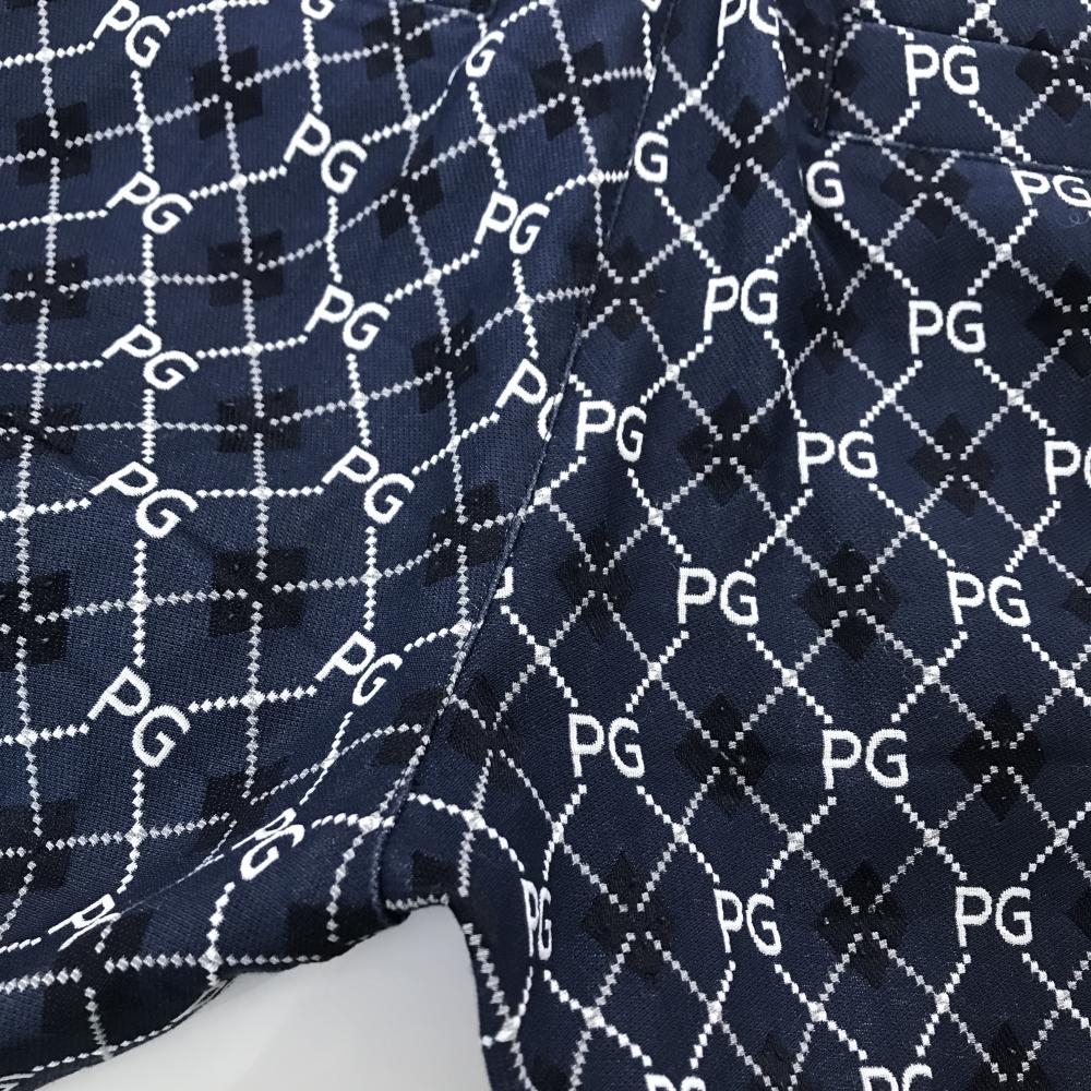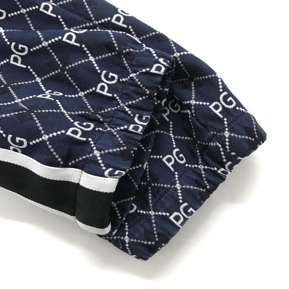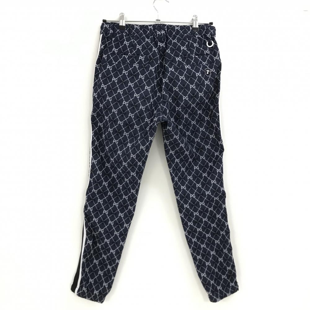 パーリーゲイツ パンツ ネイビー×白 ダイヤ柄 ロゴ総柄 ベルト部ゴム レディース 1(M) ゴルフウェア PEARLY GATES