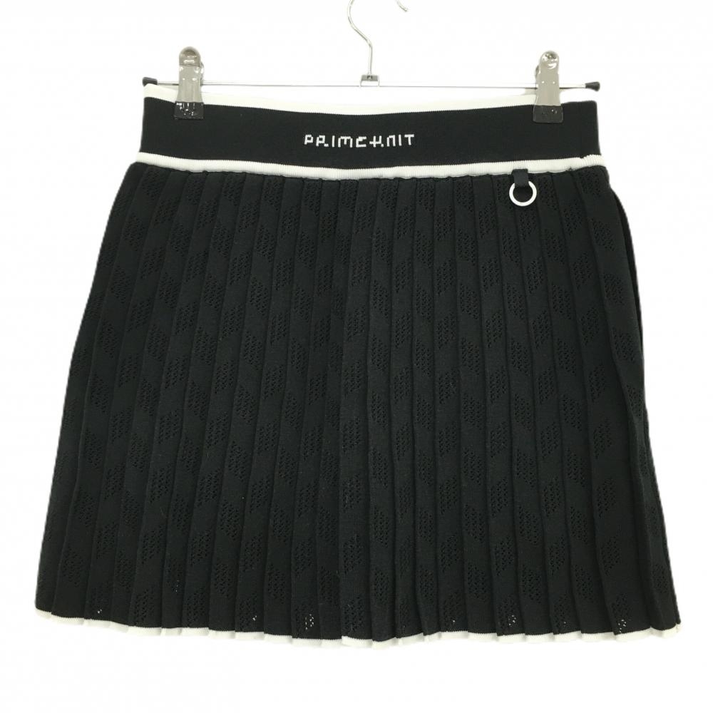 【超美品】アディダス ニットプリーツスカート 黒×白 透かし編み 裏地付 内側インナーパンツ レディース L ゴルフウェア adidas