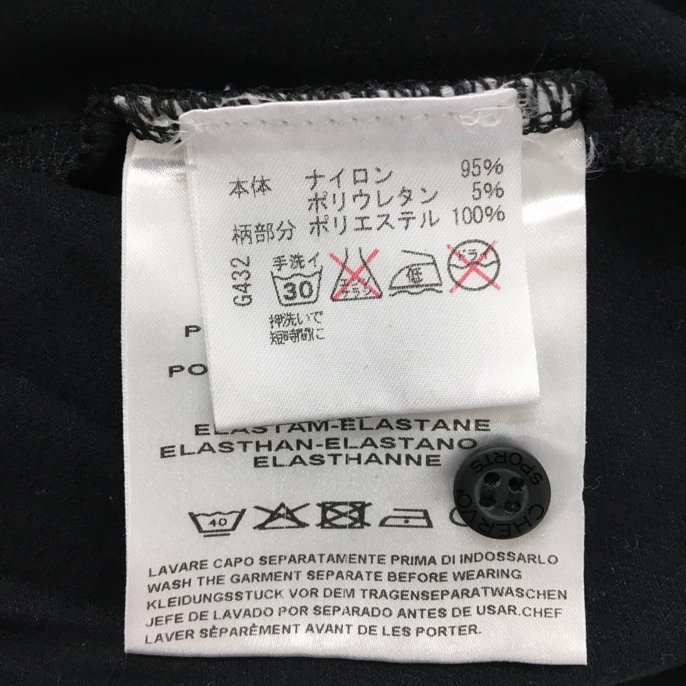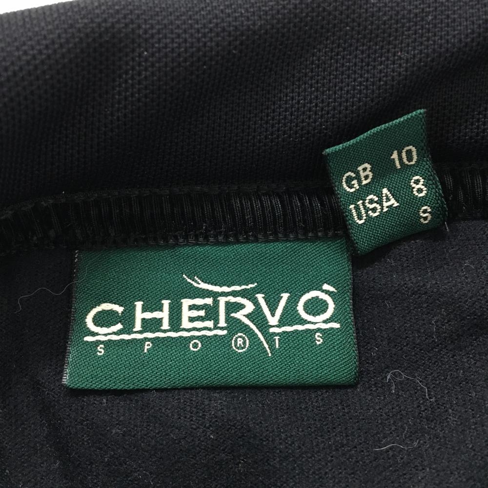 【超美品】シェルボ 長袖ポロシャツ 黒×ベージュ 襟裏・袖口レオパード柄 異素材切替 襟立て可 レディース S ゴルフウェア CHERVO
