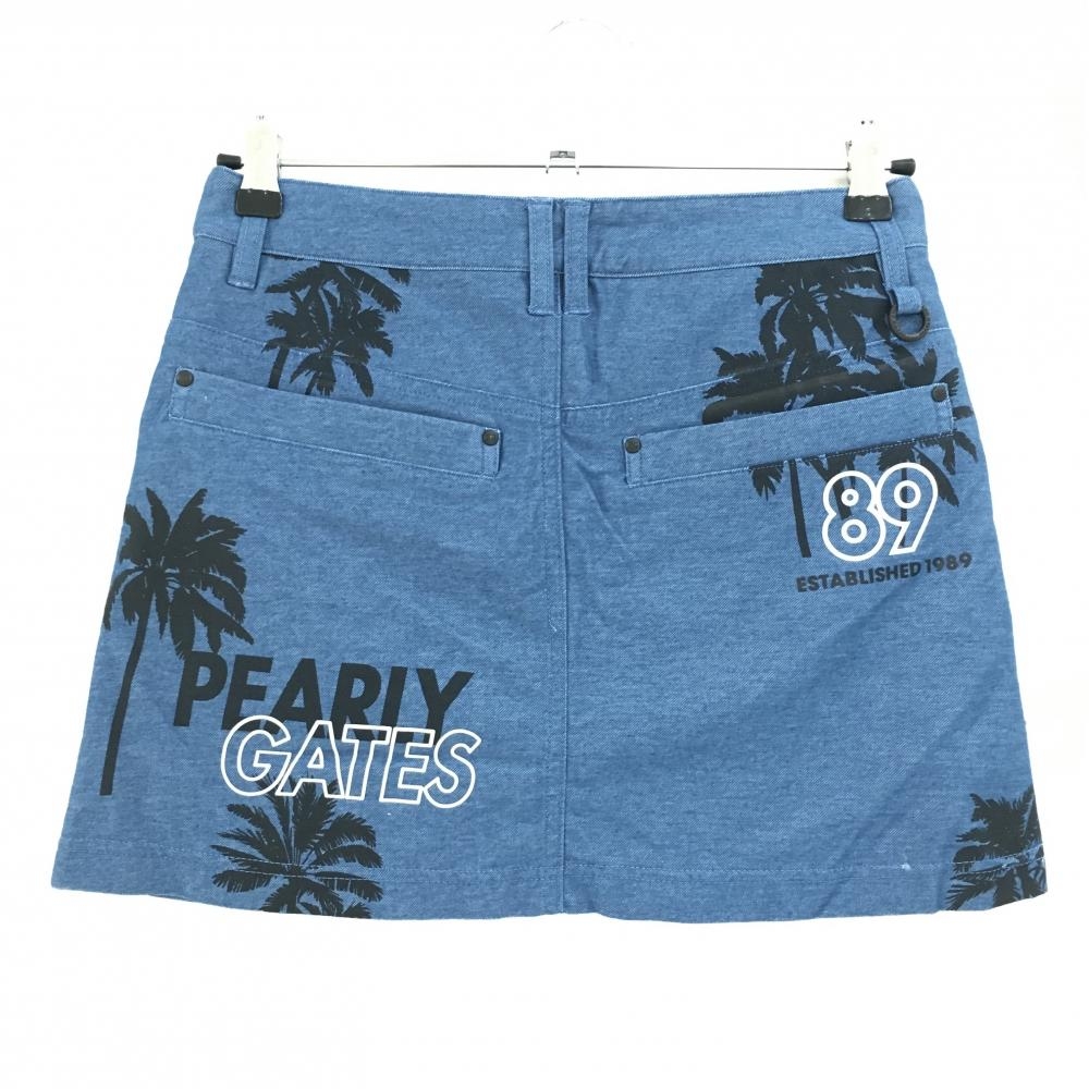 【美品】パーリーゲイツ スカート ブルー デニム風 ヤシの木 レディース 0(S) ゴルフウェア PEARLY GATES