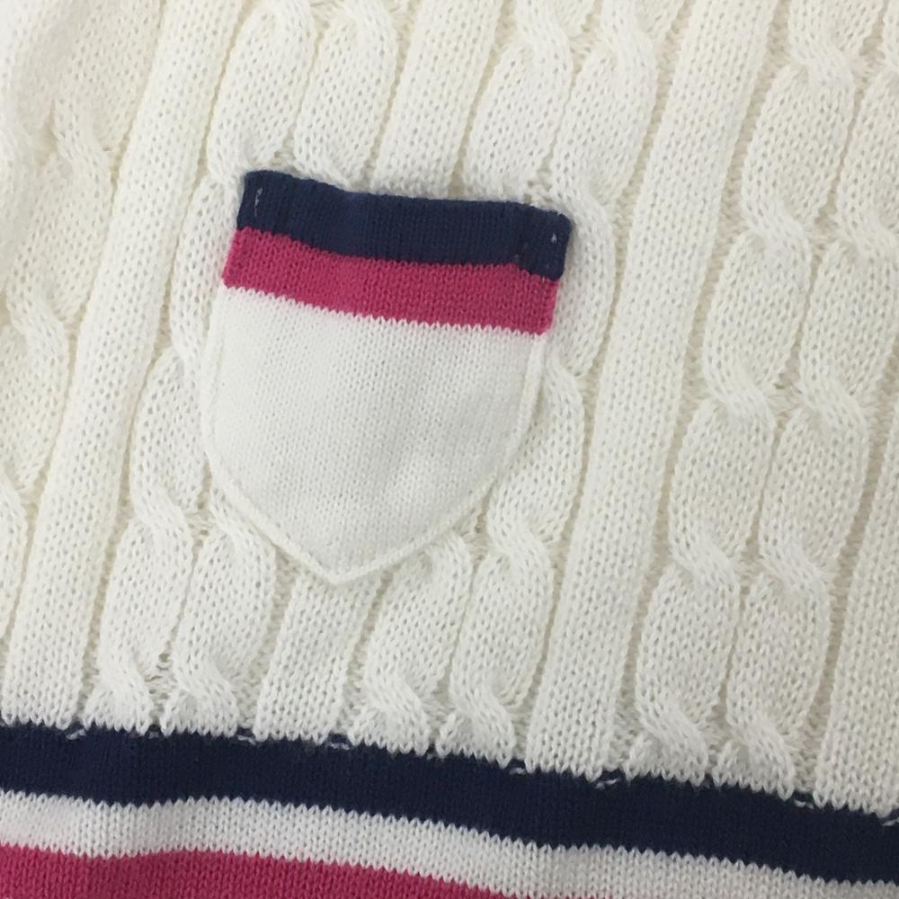 【超美品】プーマ ニットベスト 白×ピンク ケーブル編み ロゴ刺しゅう コットン混 レディース O ゴルフウェア PUMA