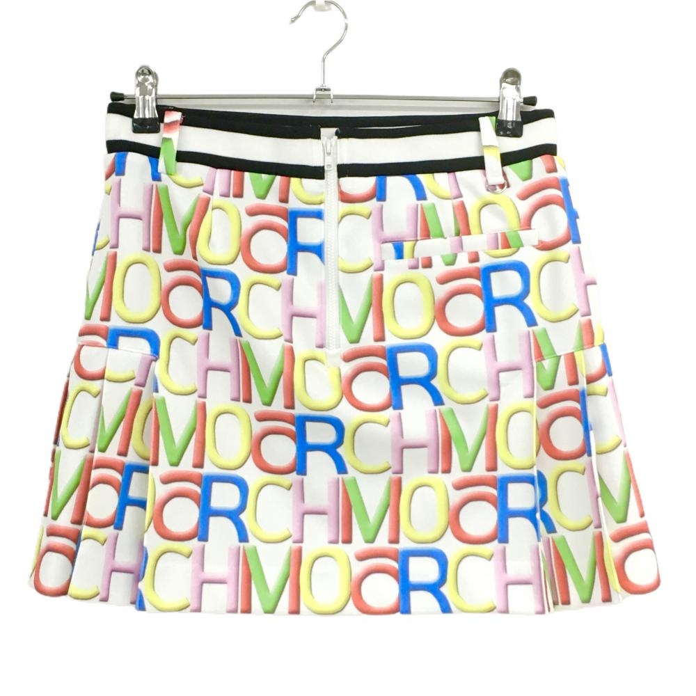 【超美品】アルチビオ スカート 白×マルチカラー ロゴ総柄 ウエストゴム レディース 38(M) ゴルフウェア archivio