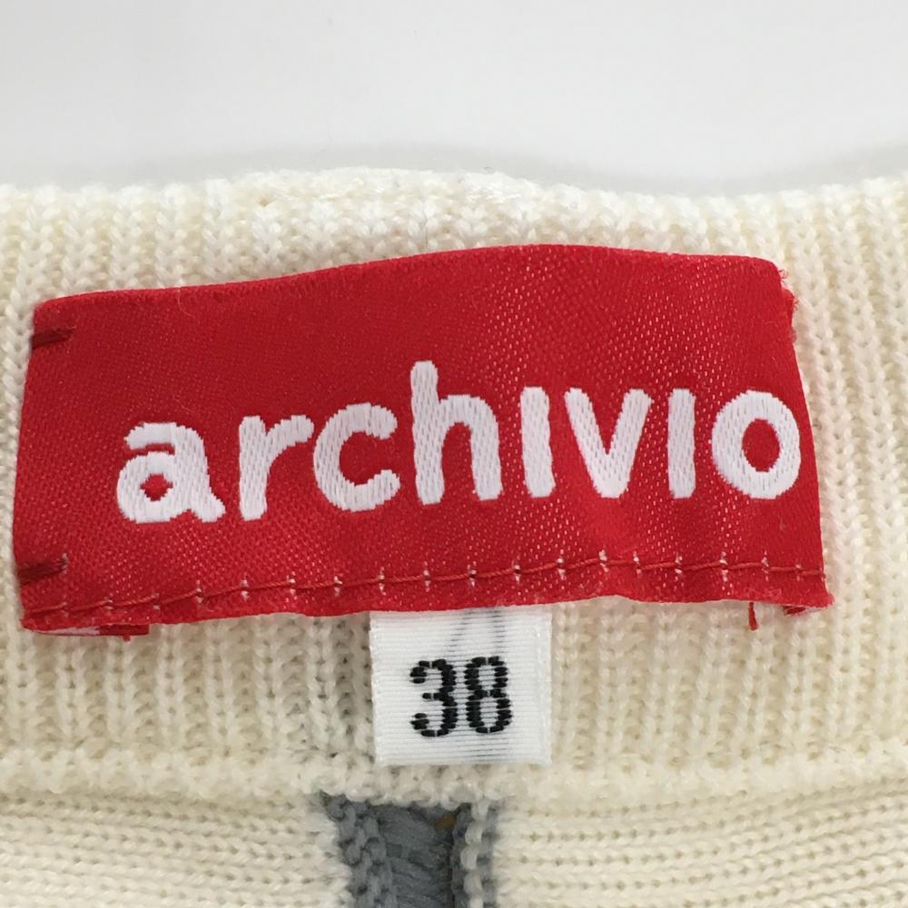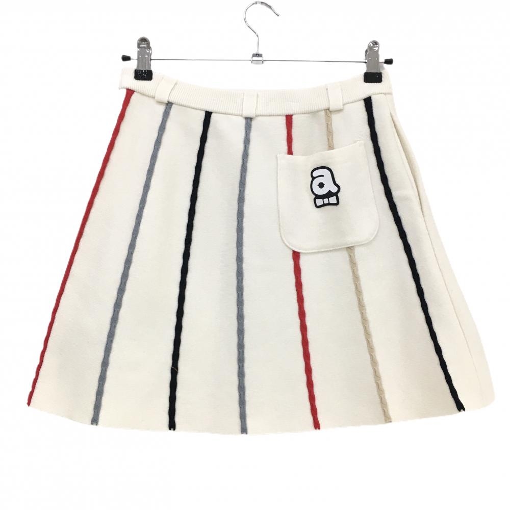 【超美品】アルチビオ ニットスカート 白×黒 ストライプ ウール混 レディース 38(M) ゴルフウェア archivio