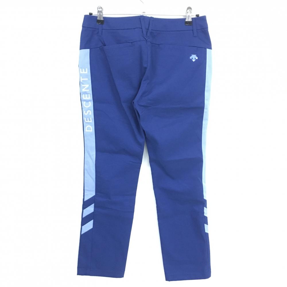 【美品】デサントゴルフ パンツ ブルー系×ライトブルー サイド英字ロゴ ストレッチ 中田英寿 レディース 70/O ゴルフウェア DESCENTE