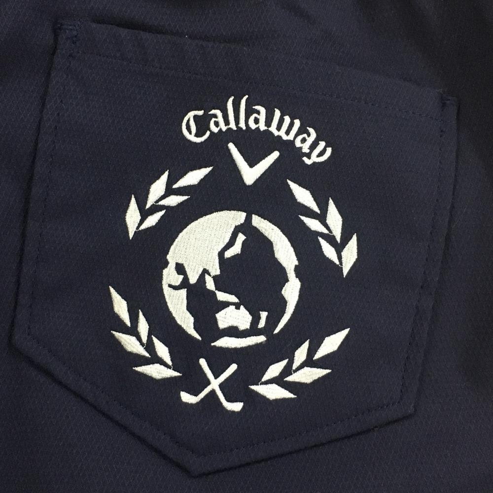 【美品】キャロウェイ パンツ ネイビー 地模様 ウエストゴム ストレッチ レディース M ゴルフウェア Callaway