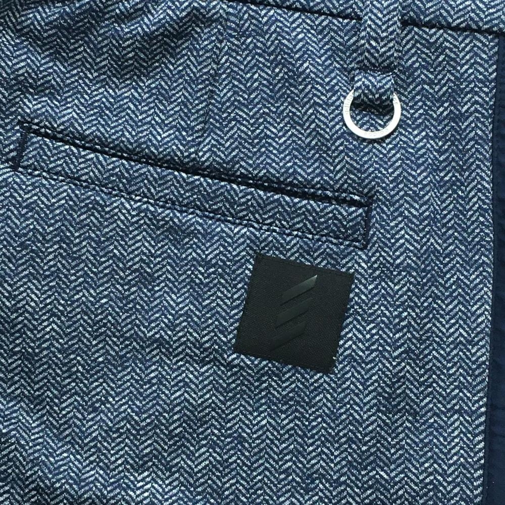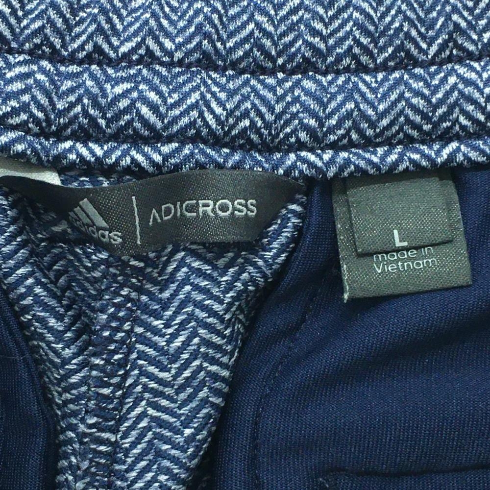 【美品】アディダス ジョガーパンツ ネイビー系 ヘリンボーン調 サイドライン ストレッチ レディース L ゴルフウェア adidas