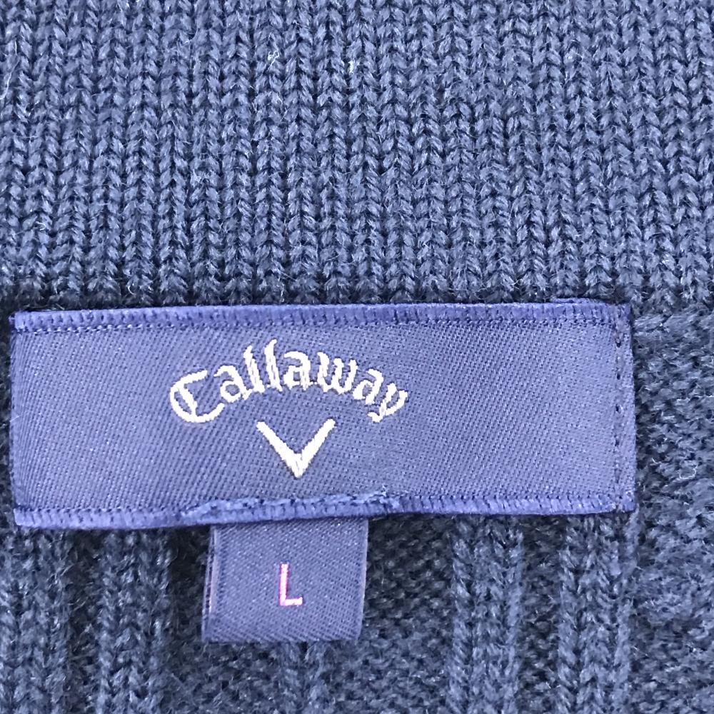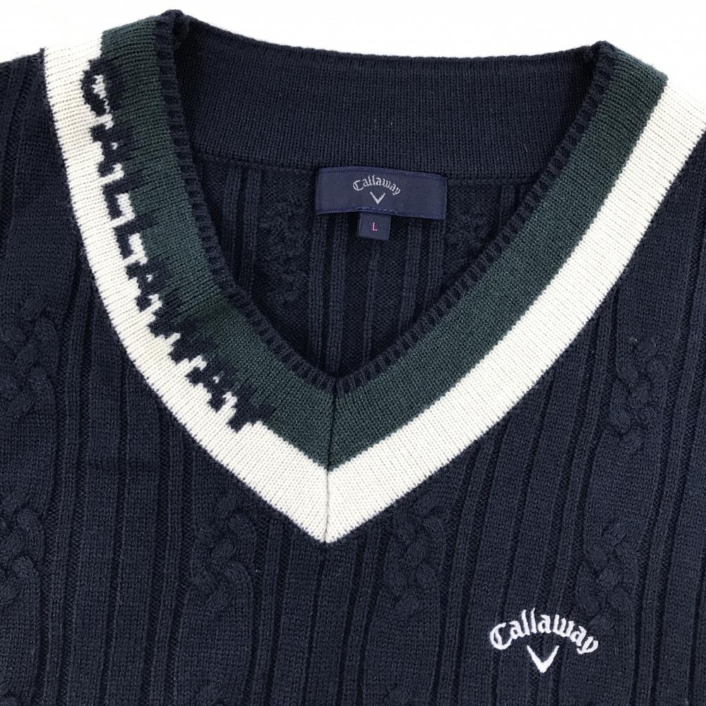 【美品】キャロウェイ ニットベスト ネイビー×アイボリー Vネック ウール混 レディース L ゴルフウェア Callaway