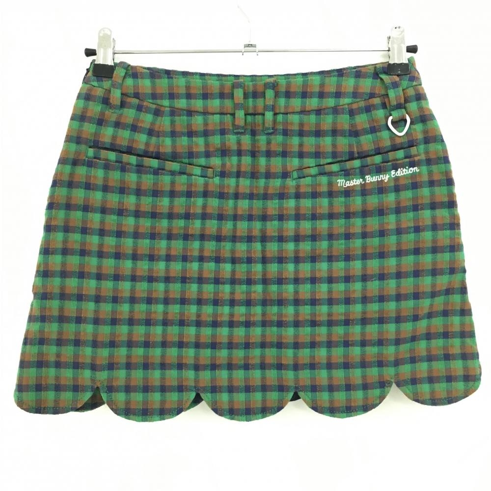 【美品】マスターバニー スカート グリーン×ネイビー×ブラウン チェック レディース 0(S) ゴルフウェア MASTER BUNNY EDITION