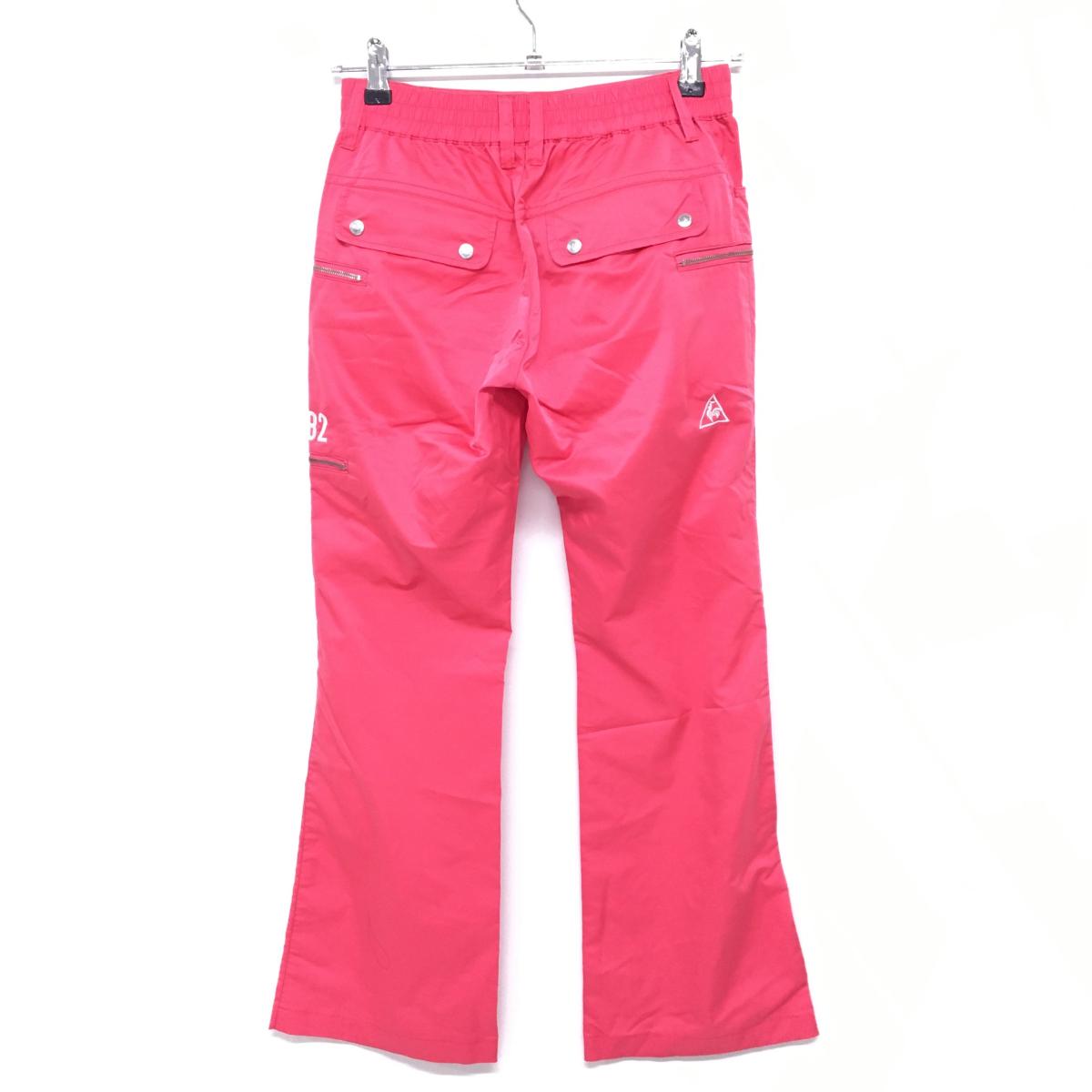 ルコックゴルフ パンツ ピンク系×白 ロゴ刺しゅう ウエストゴム 薄手 レディース 7 ゴルフウェア le coq sportif