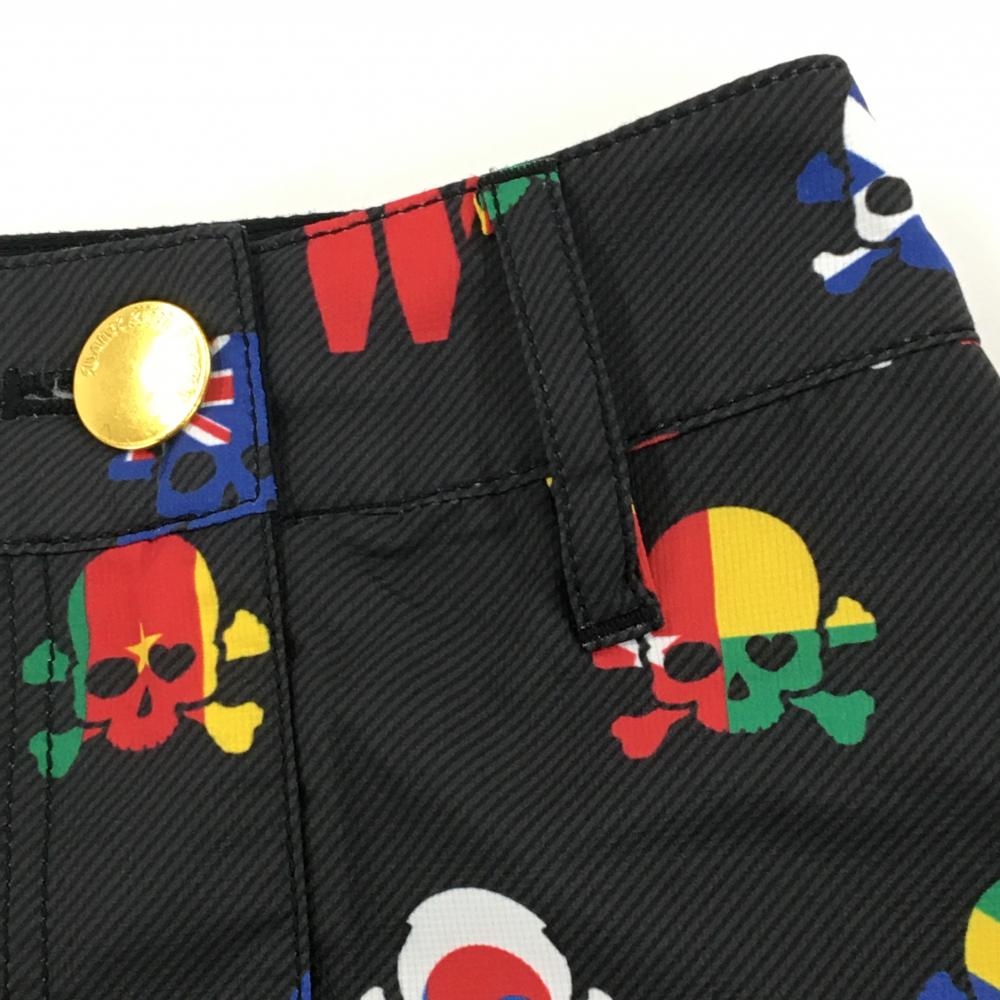 【美品】ダンスウィズドラゴン キュロットスカート 黒×マルチカラー スカル総柄 裾ロゴ レディース 1(S) ゴルフウェア Dance With Dragon