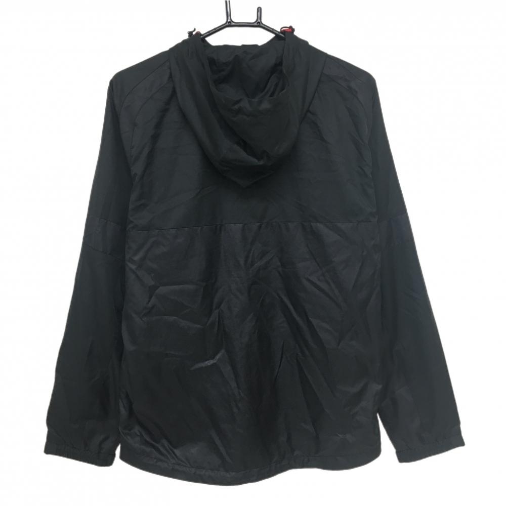 【美品】カッパ フード付ジャケット 黒×白 胸元ロゴ 微起毛裏地 裾ドローコード メンズ M ゴルフウェア Kappa