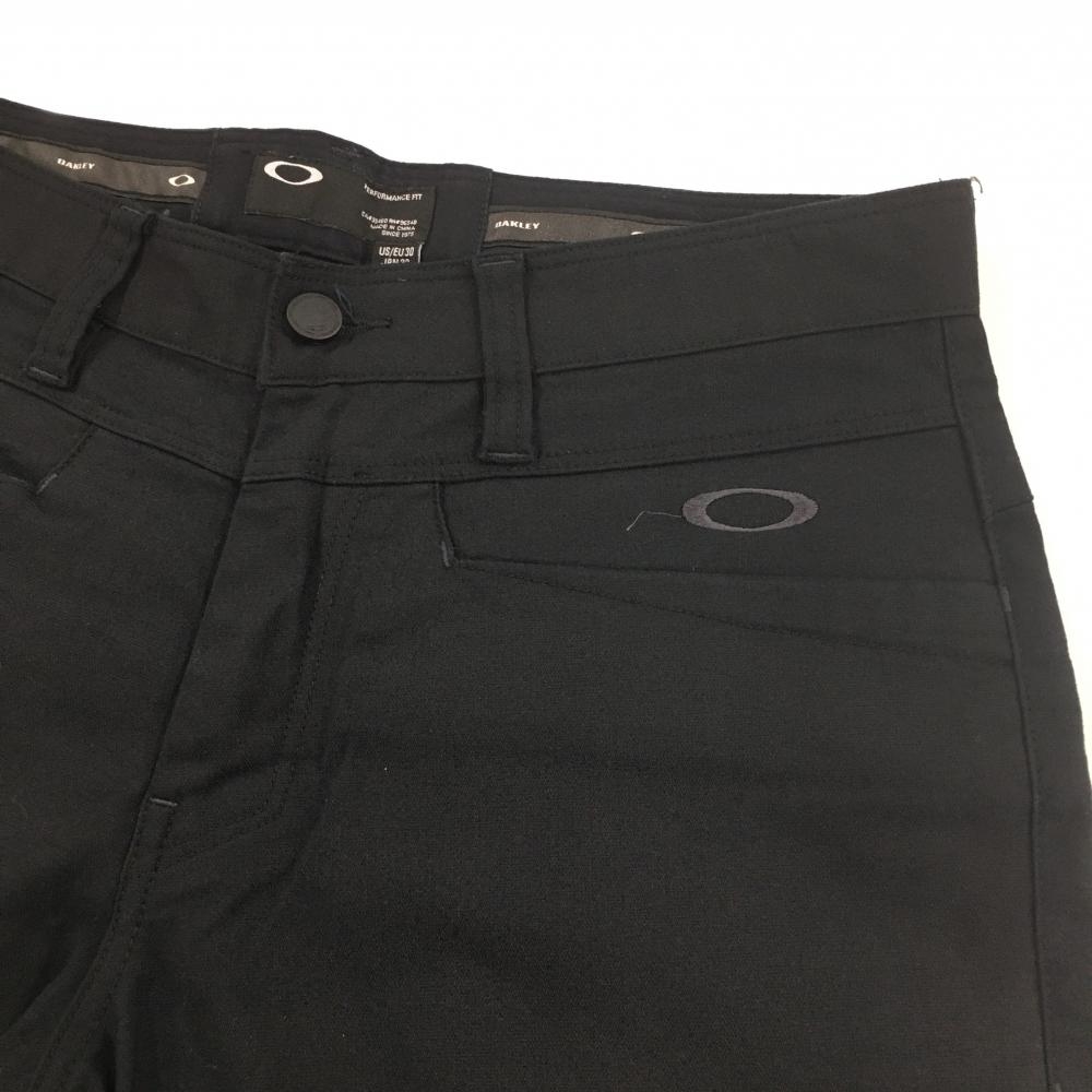 オークリー パンツ 黒×グレー 裾プリント ストレッチ ロゴ刺しゅう メンズ 32 ゴルフウェア Oakley