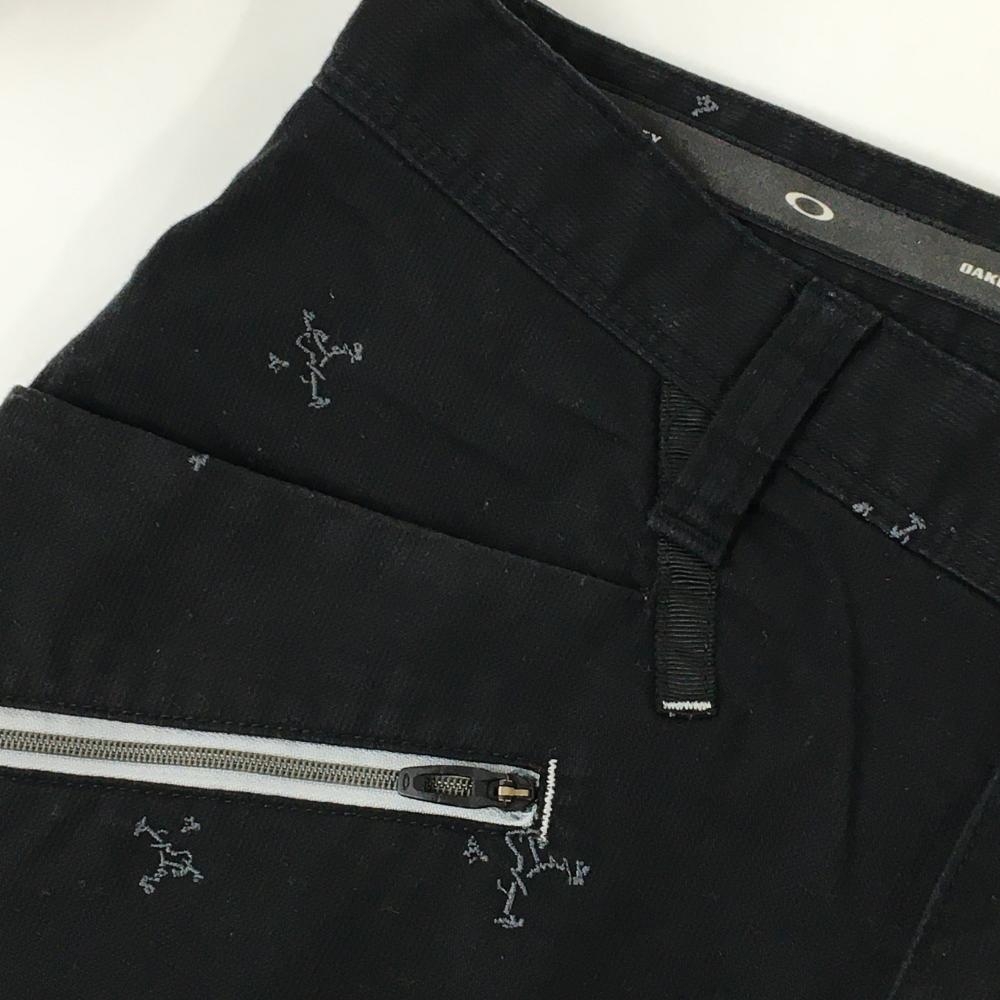 オークリー パンツ 黒×グレー ロゴ刺しゅう総柄 ティー装着可 ストレッチ メンズ 32 ゴルフウェア Oakley