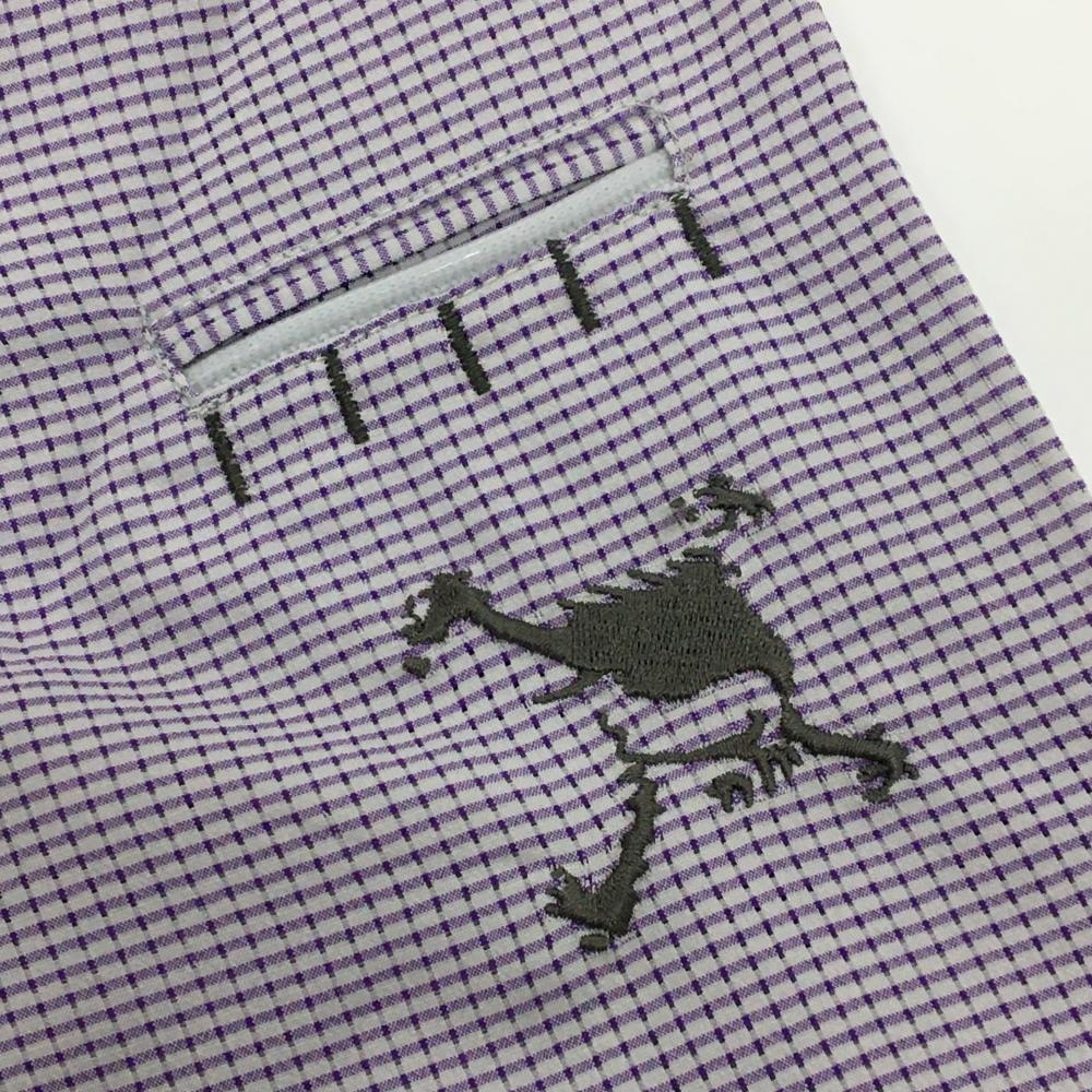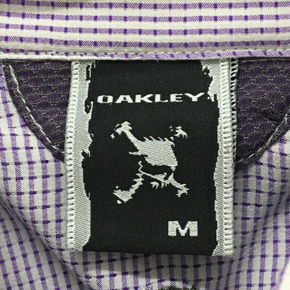 オークリー 長袖シャツ 白×パープル 地模様 ロゴ刺しゅう ボタンダウン メンズ M ゴルフウェア Oakley