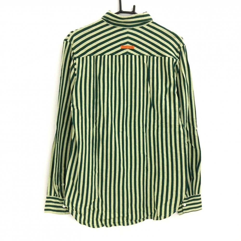 【超美品】パーリーゲイツ 長袖シャツ グリーン×ライトグリーン ストライプ ボタンダウン メンズ 5(L) ゴルフウェア PEARLY GATES