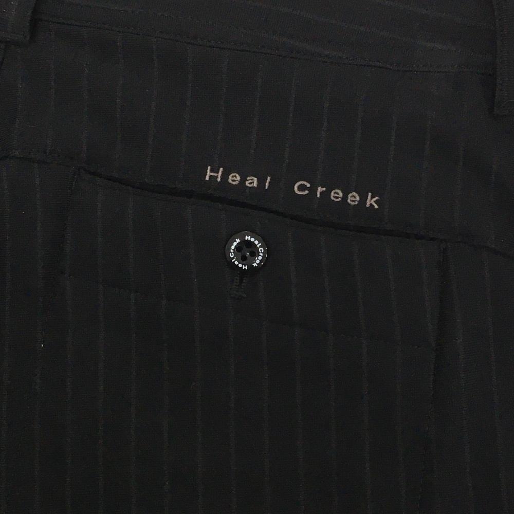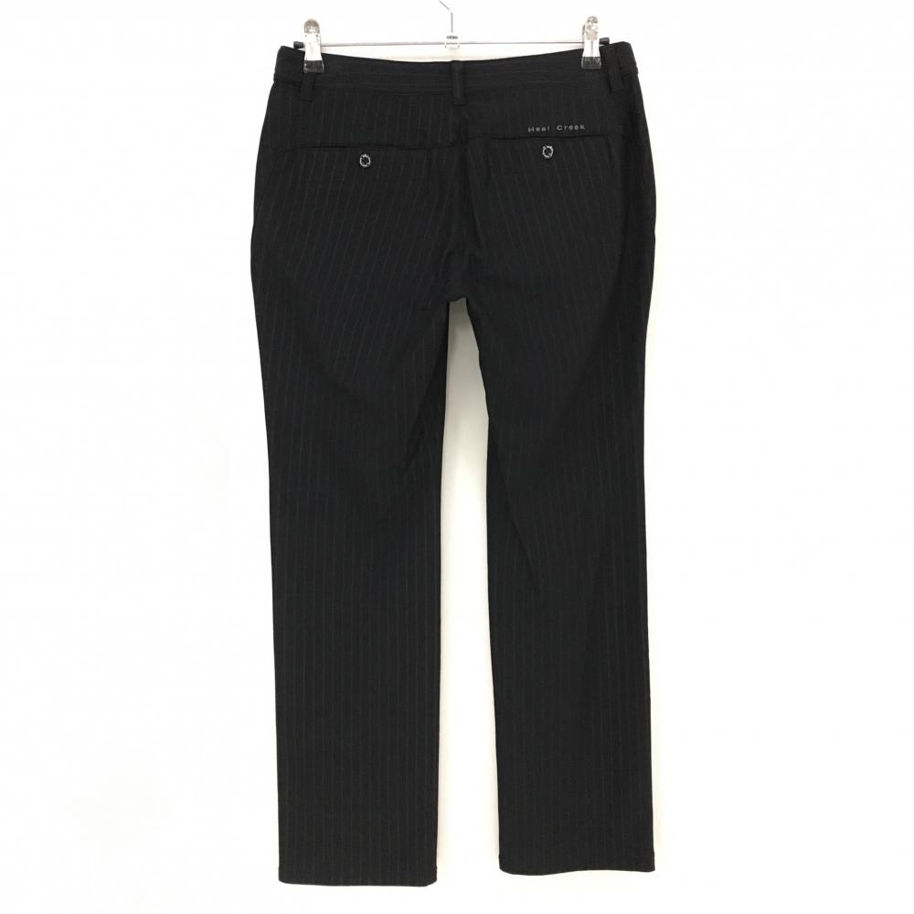 【新品】ヒールクリーク ストレッチパンツ 黒 ストライプ 裏起毛 レディース 44(XL) ゴルフウェア Heal Creek