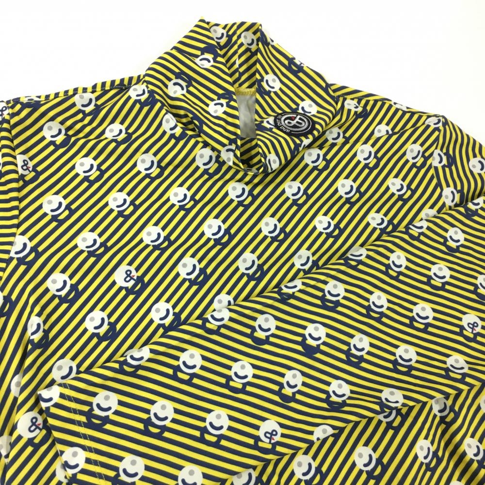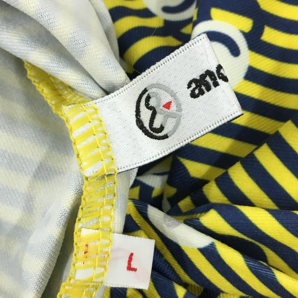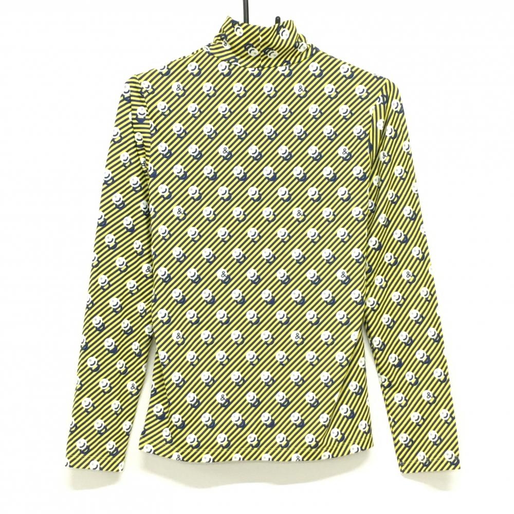 【超美品】アンパスィ 長袖ハイネックシャツ イエロー×ネイビー 斜めストライプ レディース L ゴルフウェア and per se