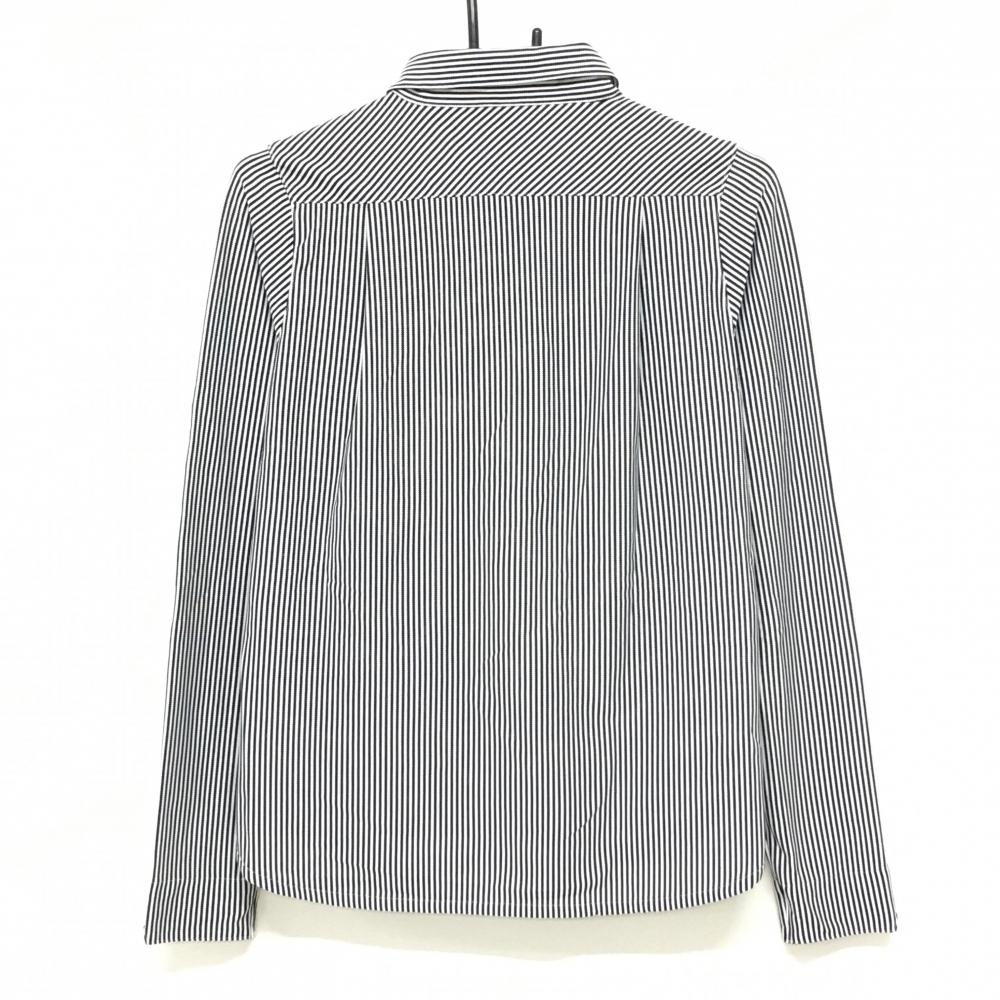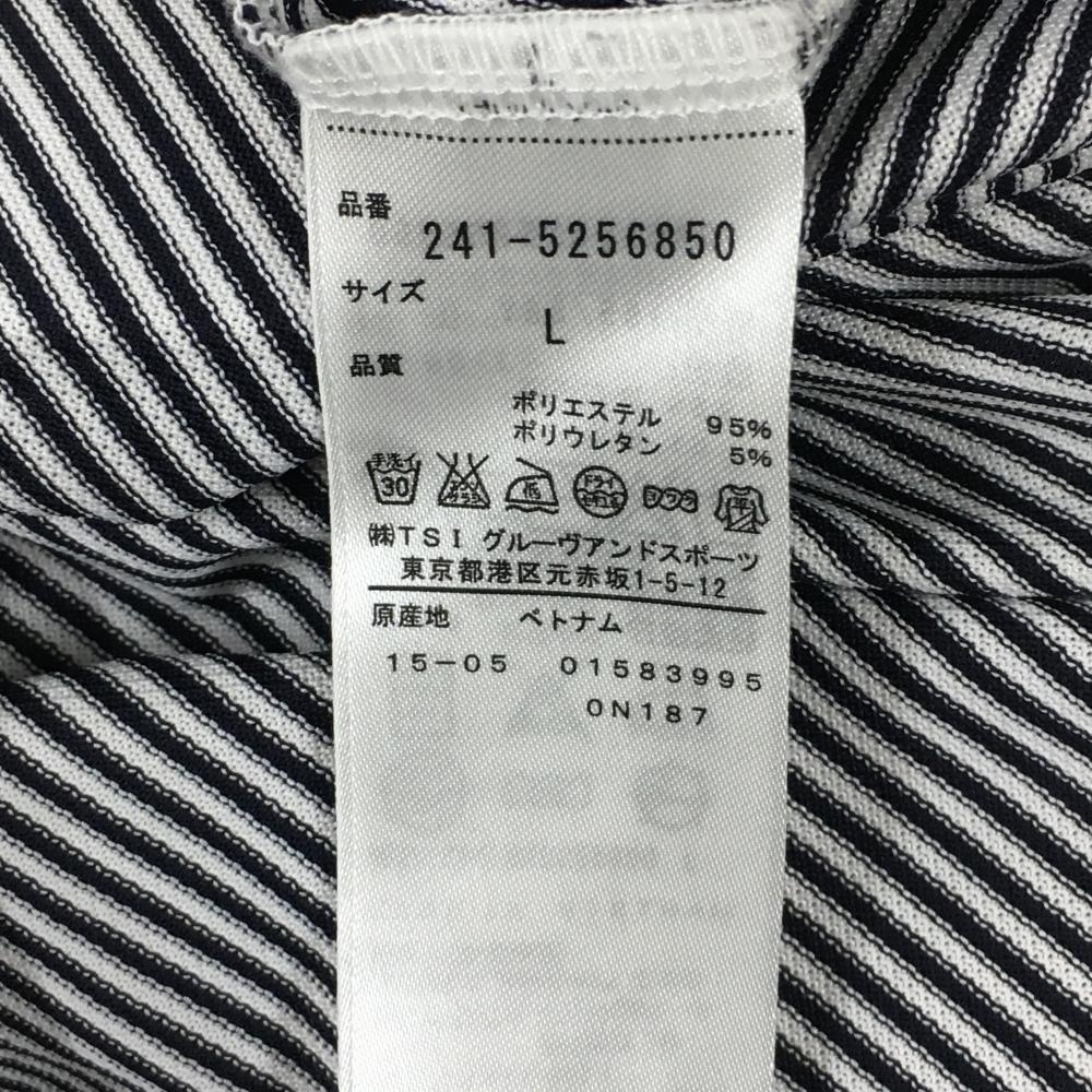 【超美品】キャロウェイ 長袖ポロシャツ 白×ダークネイビー ストライプ ボタンダウン レディース L ゴルフウェア Callaway