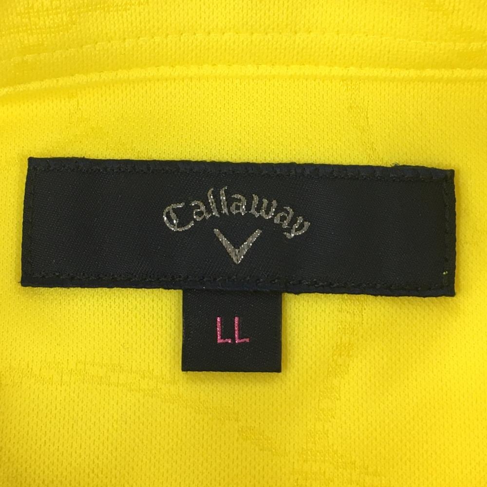 【超美品】キャロウェイ 長袖ポロシャツ イエロー×白 総柄 ロゴネイビー レディース LL ゴルフウェア Callaway
