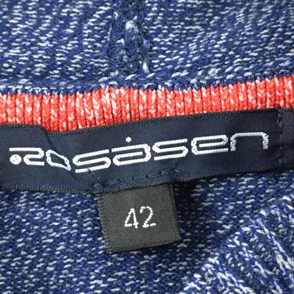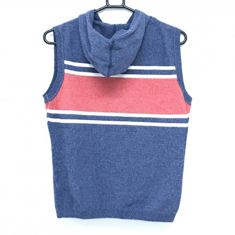 【超美品】ロサーセン フード付ニットベスト ネイビー×レッド×白 サイド上部透かし編み レディース 42(L) ゴルフウェア Rosasen