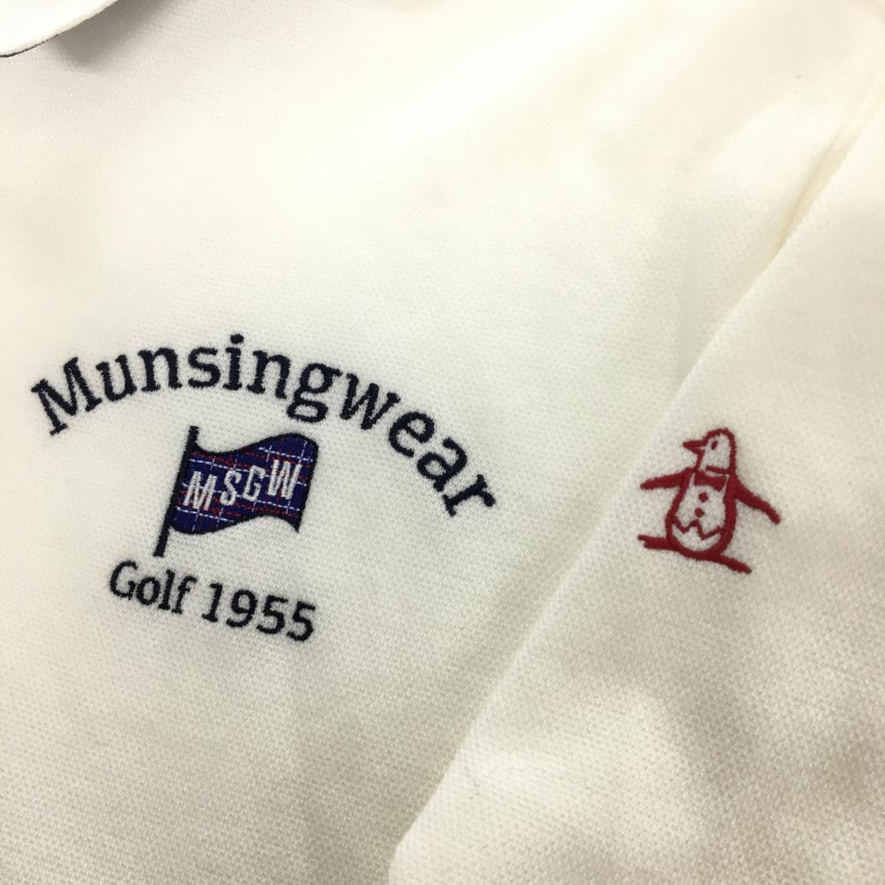 【美品】マンシングウェア 長袖ポロシャツ 白 襟裏チェック フラッグ刺しゅう レディース LL ゴルフウェア 2024年モデル Munsingwear