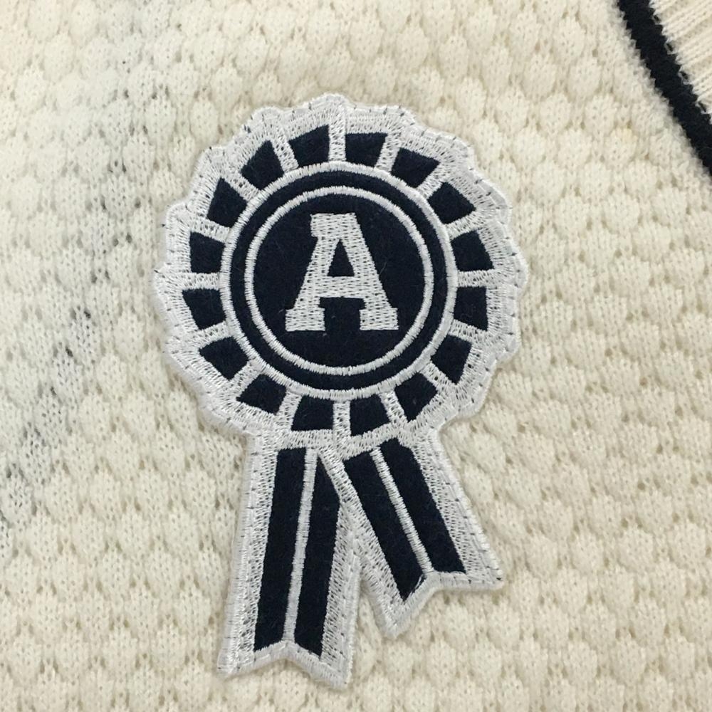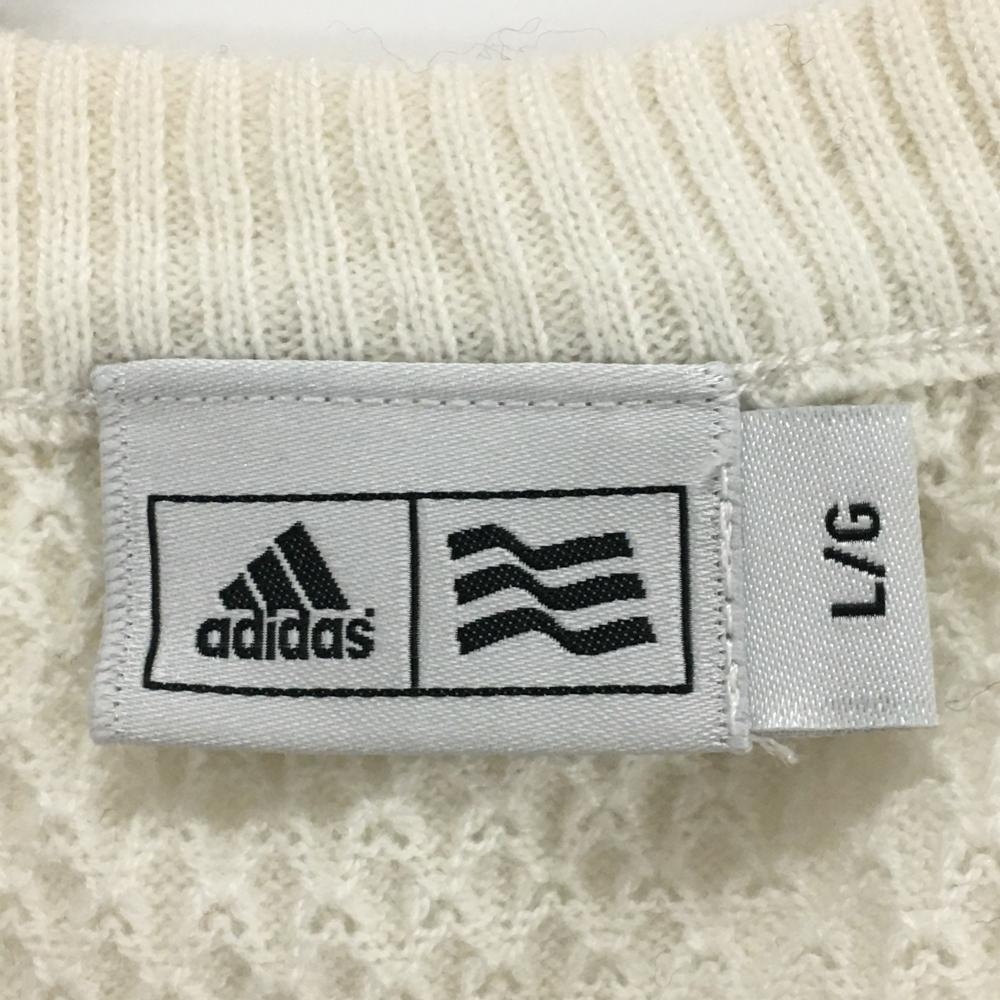 【超美品】アディダス ニットベスト 白×ネイビー×グリーン ウール混 Vネック ワッペン レディース L/G ゴルフウェア adidas