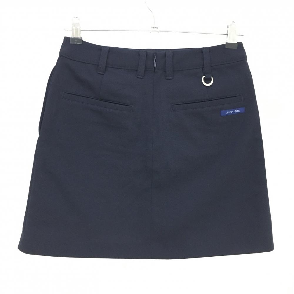 【超美品】ジュンアンドロペ スカート ネイビー×白 ストレッチ ワッペン レディース S ゴルフウェア JUN&ROPE