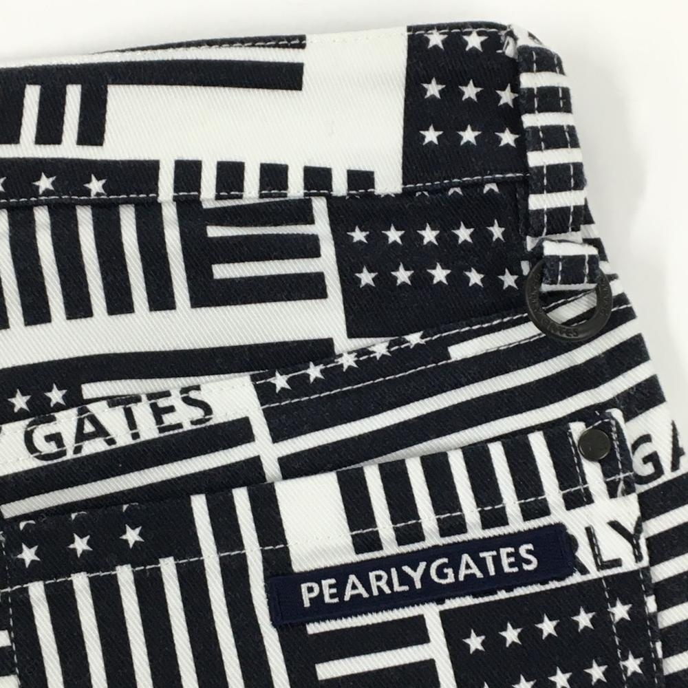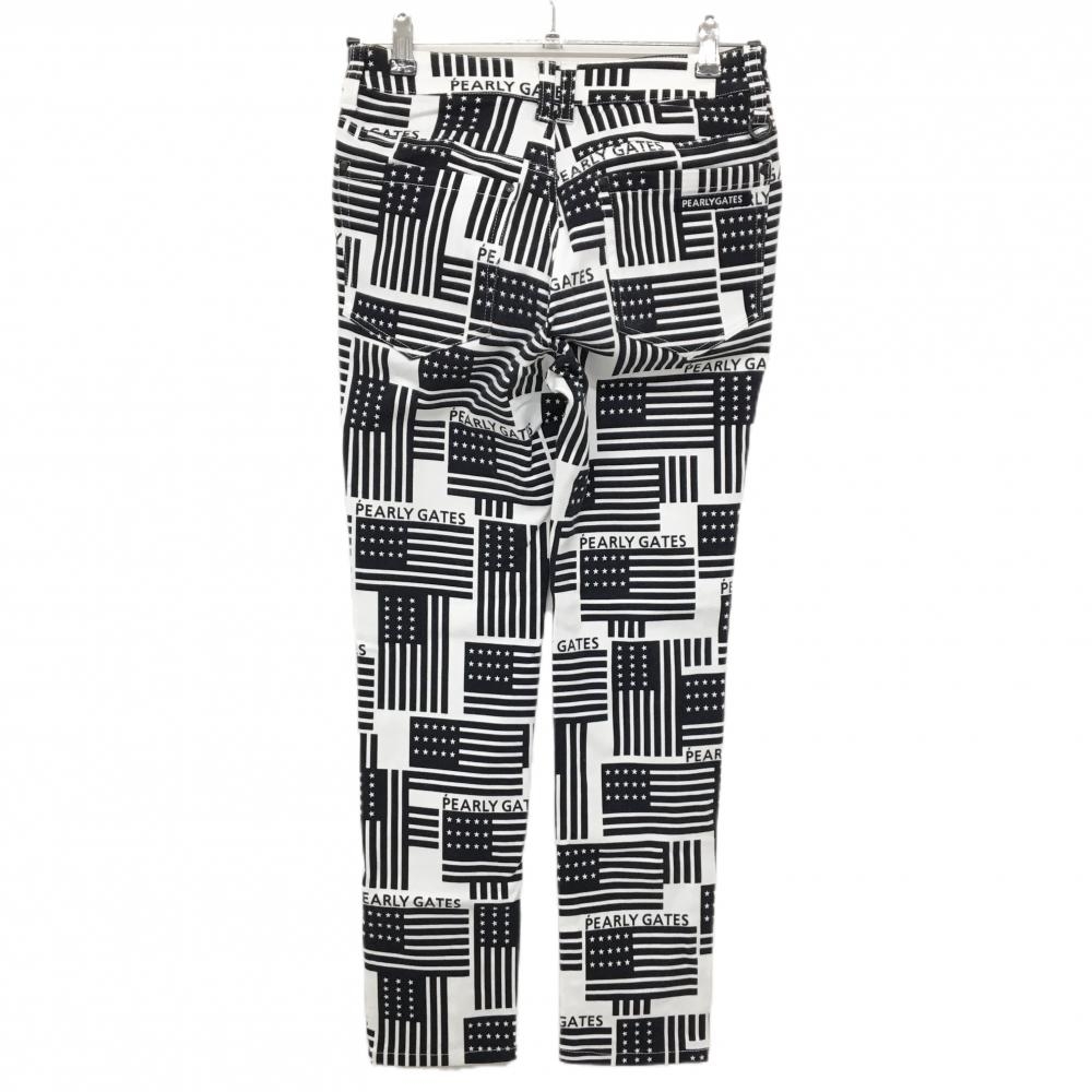 【美品】パーリーゲイツ パンツ 白×ネイビー 星条旗総柄 ストレッチ レディース 00(XS) ゴルフウェア PEARLY GATES