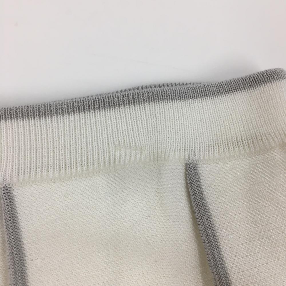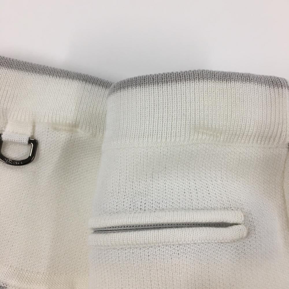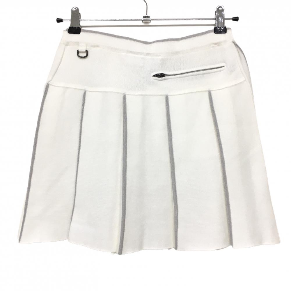 【美品】デサントゴルフ ニットプリーツスカート 白×グレー 裾ロゴ ウエストゴム 調節紐 中田英寿 レディース S ゴルフウェア DESCENTE