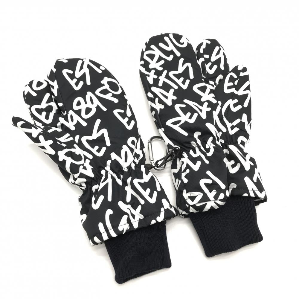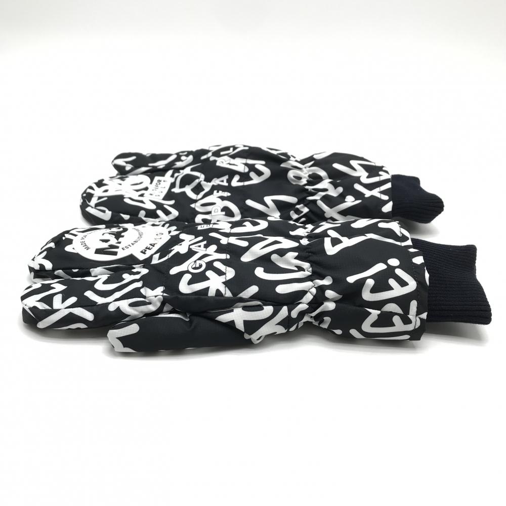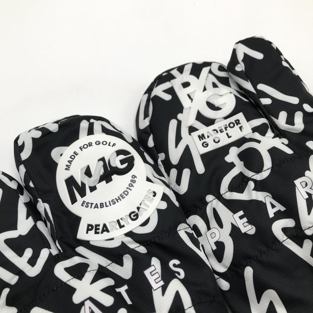 【美品】パーリーゲイツ 手袋 黒×白 ロゴ総柄 ミトングローブ レディース ゴルフウェア PEARLY GATES