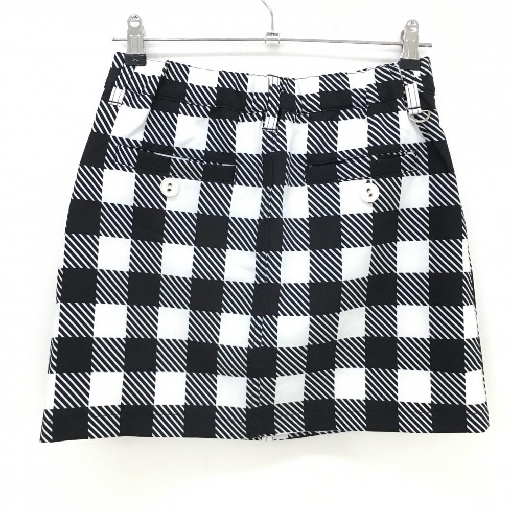 【超美品】キスオンザグリーン スカート 白×黒 チェック柄 裾ロゴ ウエストゴム レディース 2(M) ゴルフウェア kiss on the green