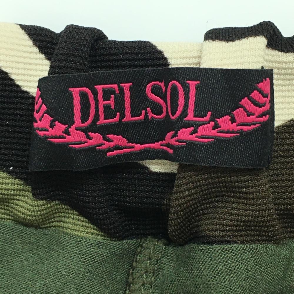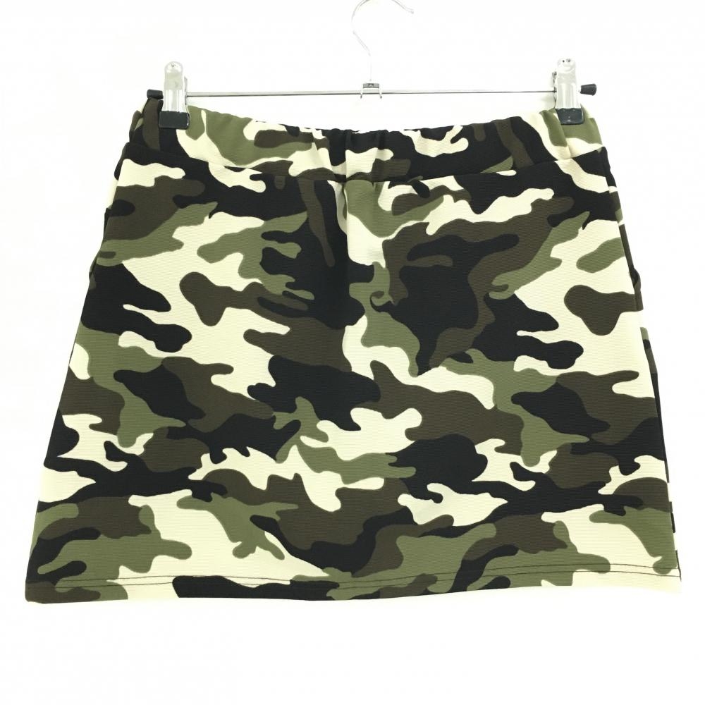 【超美品】デルソル スカート ライトベージュ×カーキ 迷彩柄 カモフラ ウエストゴム レディース M ゴルフウェア DELSOL