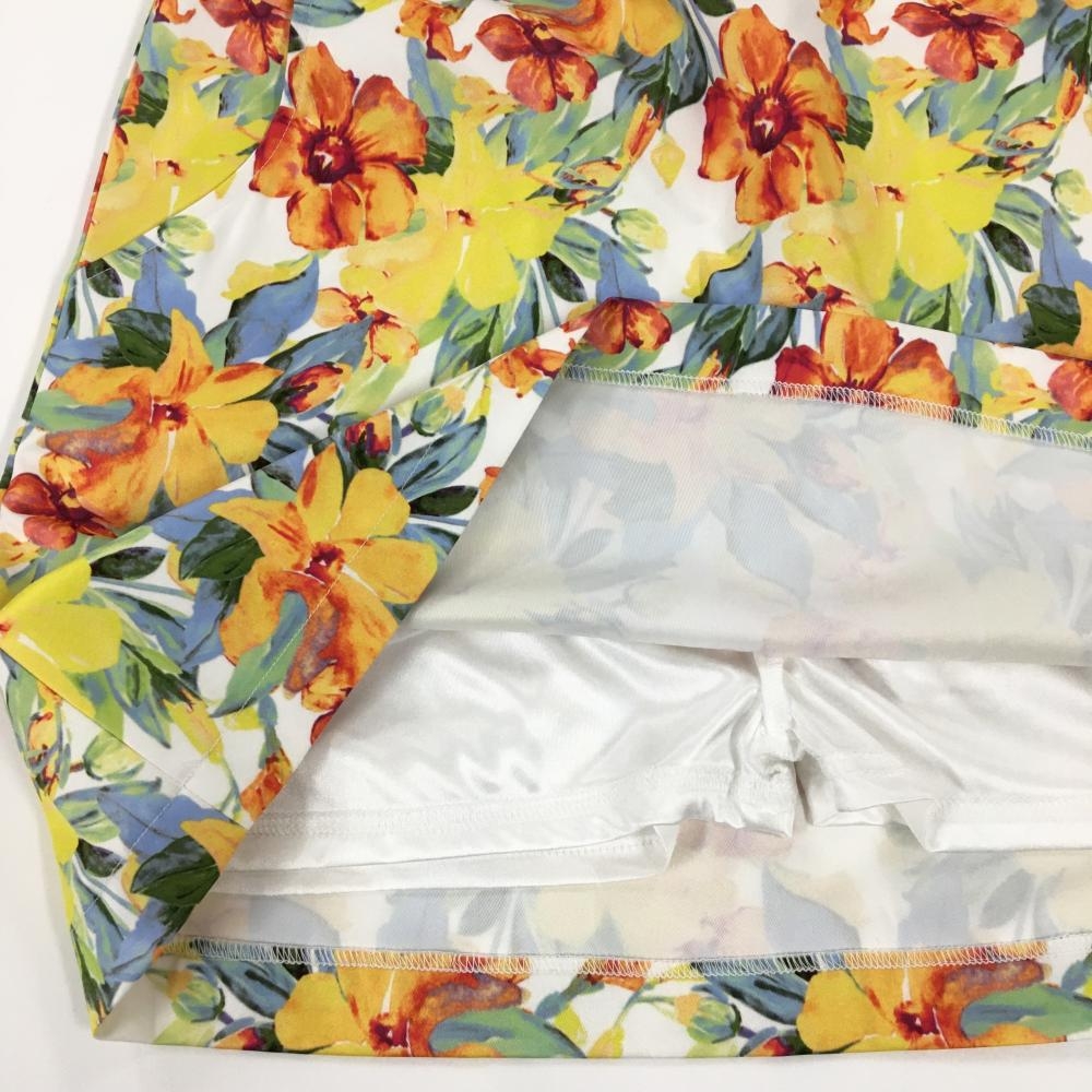【新品】キスオンザグリーン スカート 白×イエロー 花柄 内側インナーパンツ レディース 2(M) ゴルフウェア kiss on the green