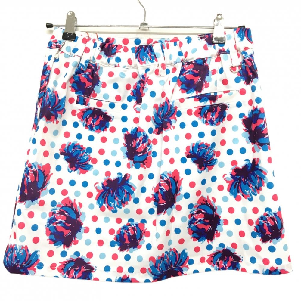 【新品】キスオンザグリーン スカート 白×ブルー×ピンク ドット 花柄風 レディース 3(L) ゴルフウェア kiss on the green