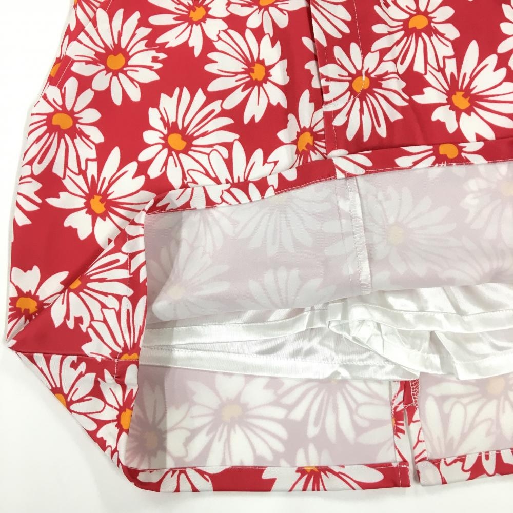 【新品】キスオンザグリーン スカート レッドピンク系×白 花柄 内側インナーパンツ レディース 3(L) ゴルフウェア kiss on the green