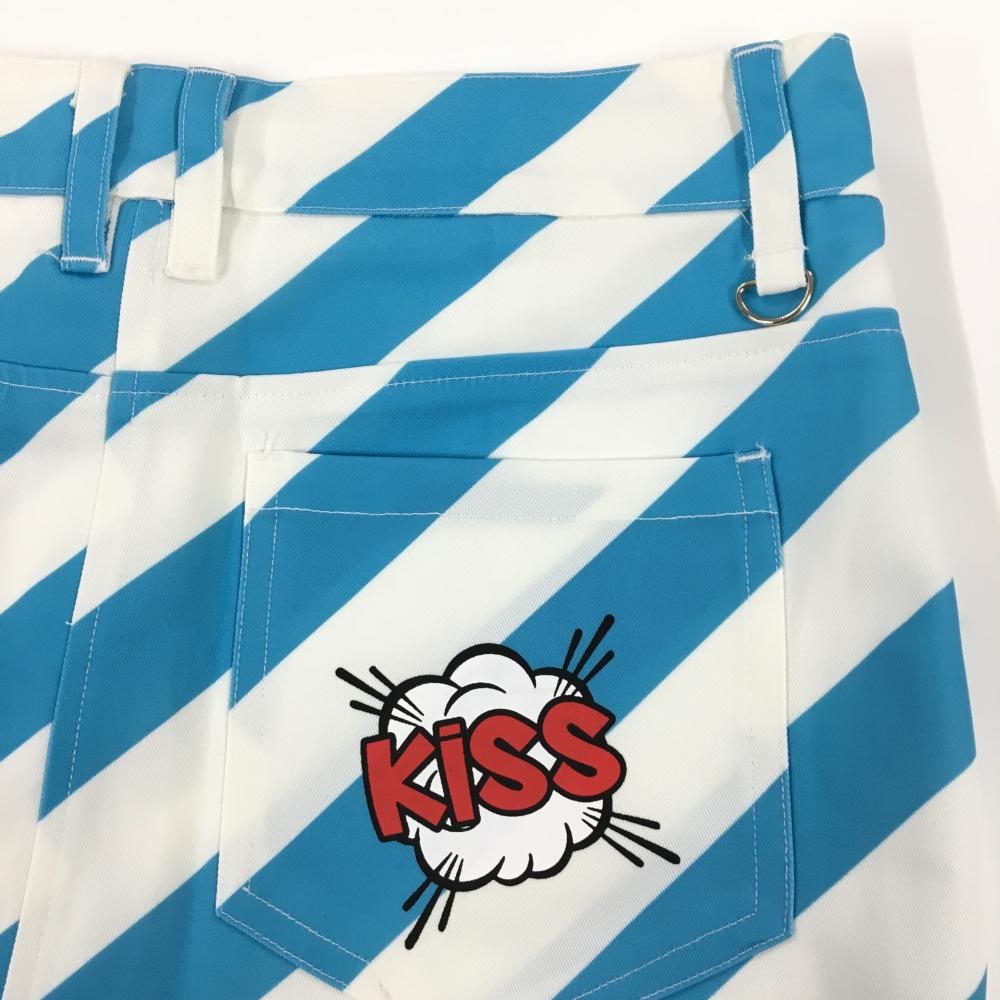 【新品】キスオンザグリーン スカート ライトブルー×白 斜めストライプ レディース 3(L) ゴルフウェア kiss on the green