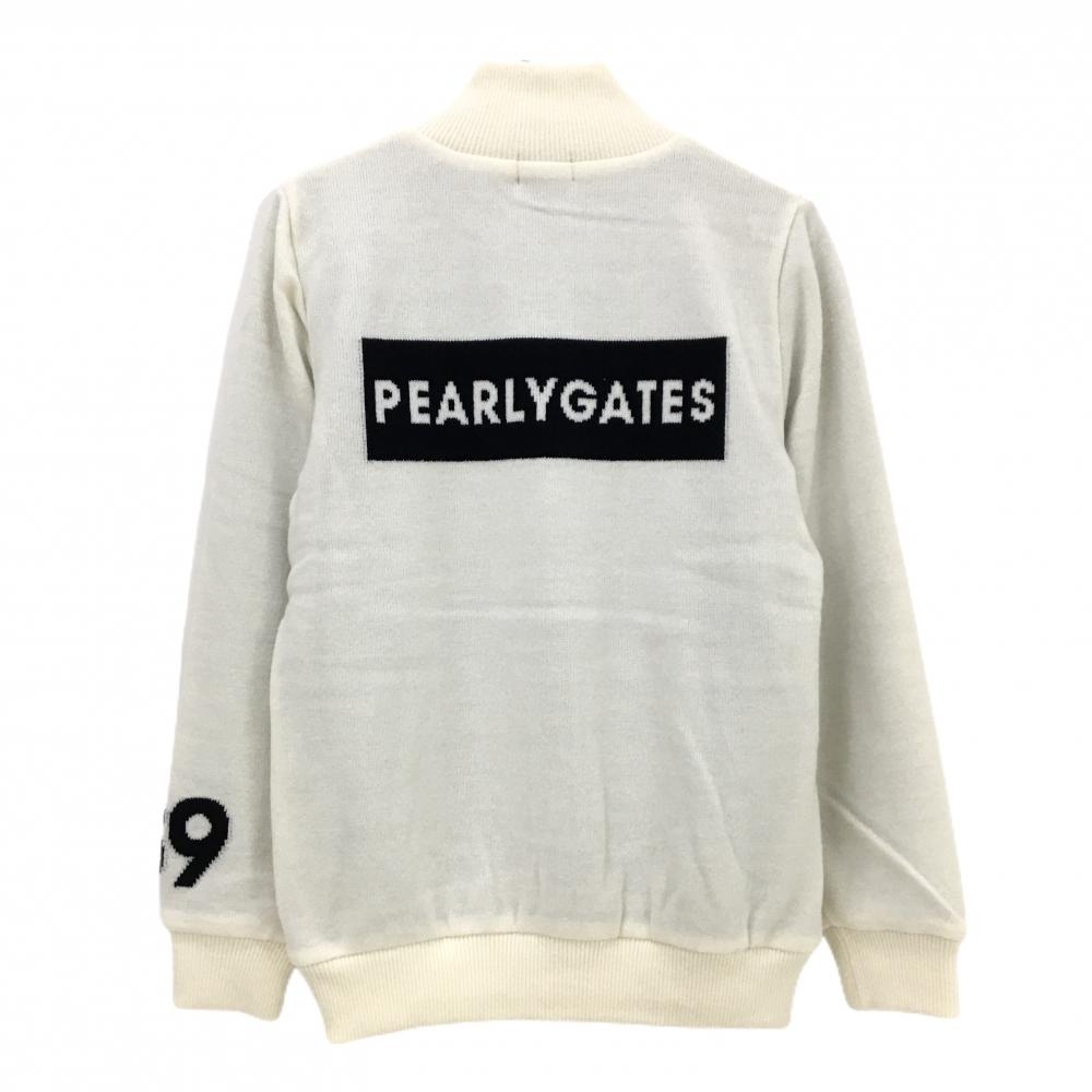 【新品】パーリーゲイツ ニットジャケット 白系×黒 裏地英字総柄 ウール混 ブルゾン メンズ 5(L) ゴルフウェア PEARLY GATES