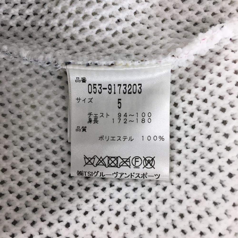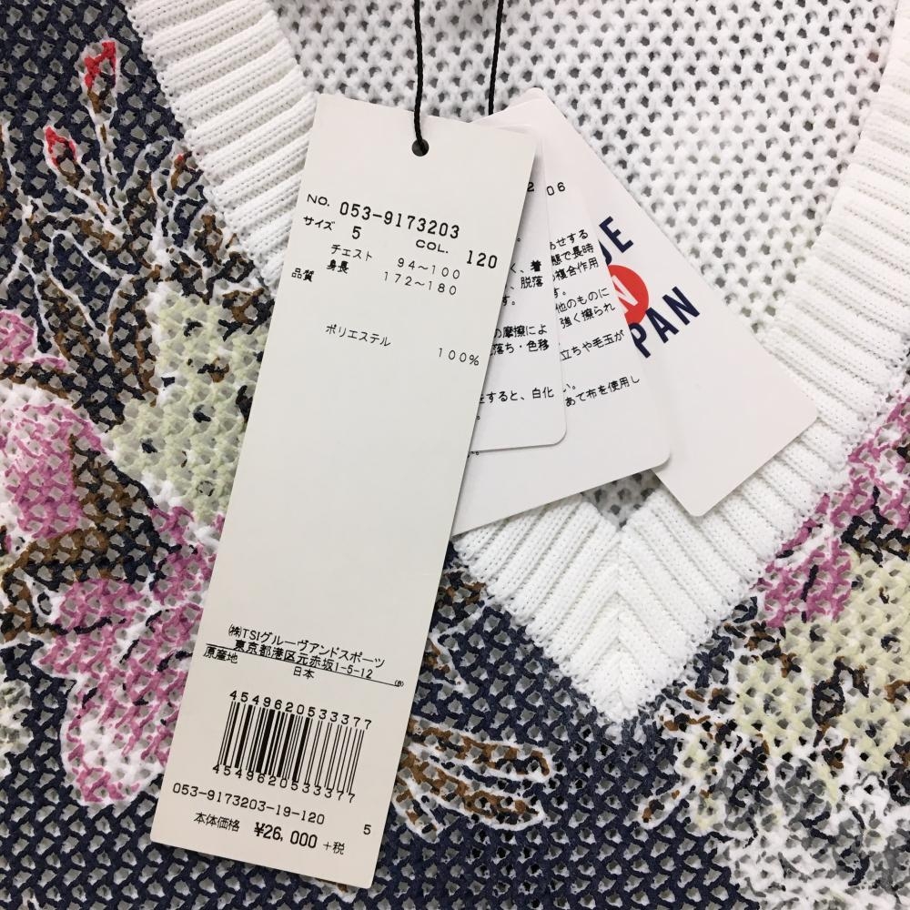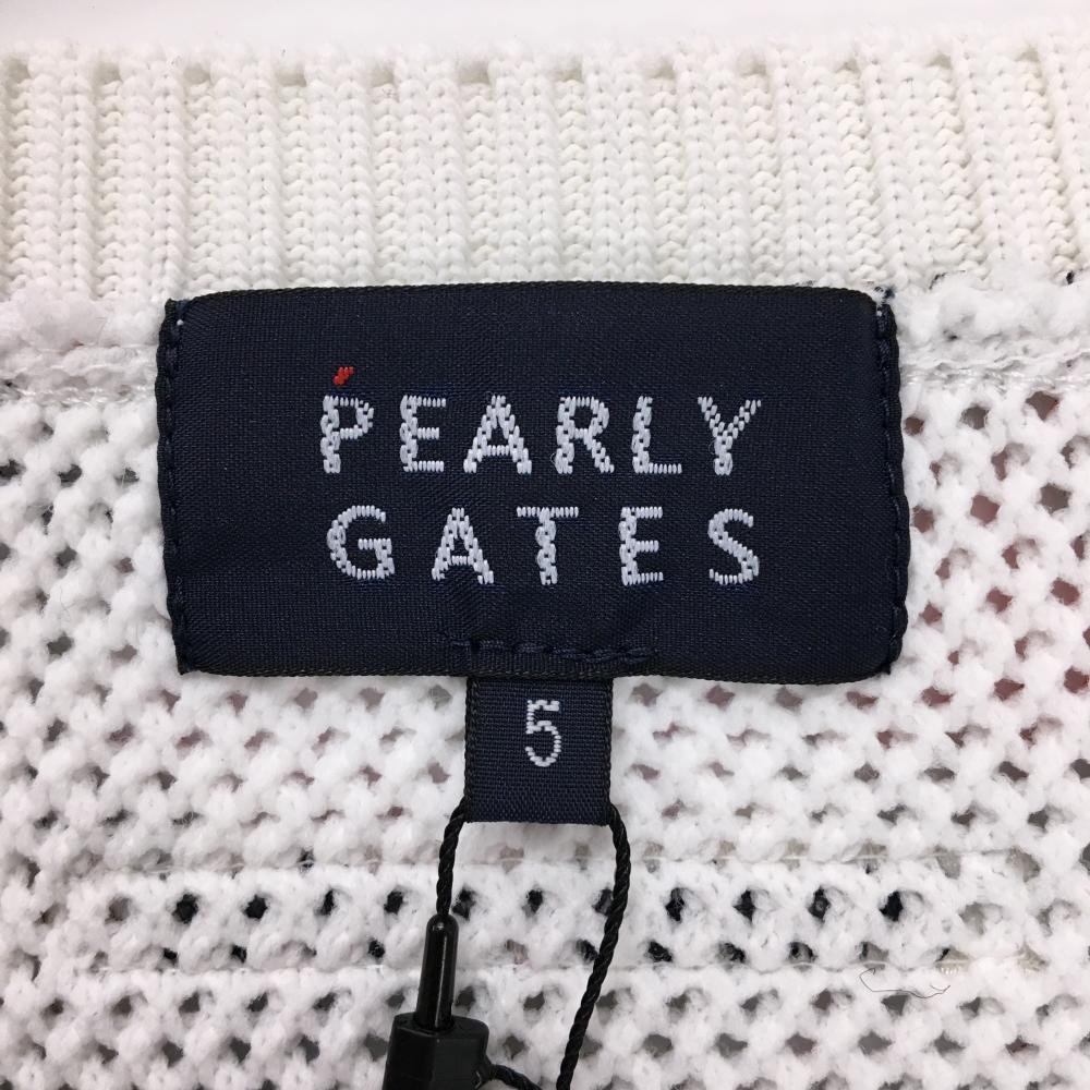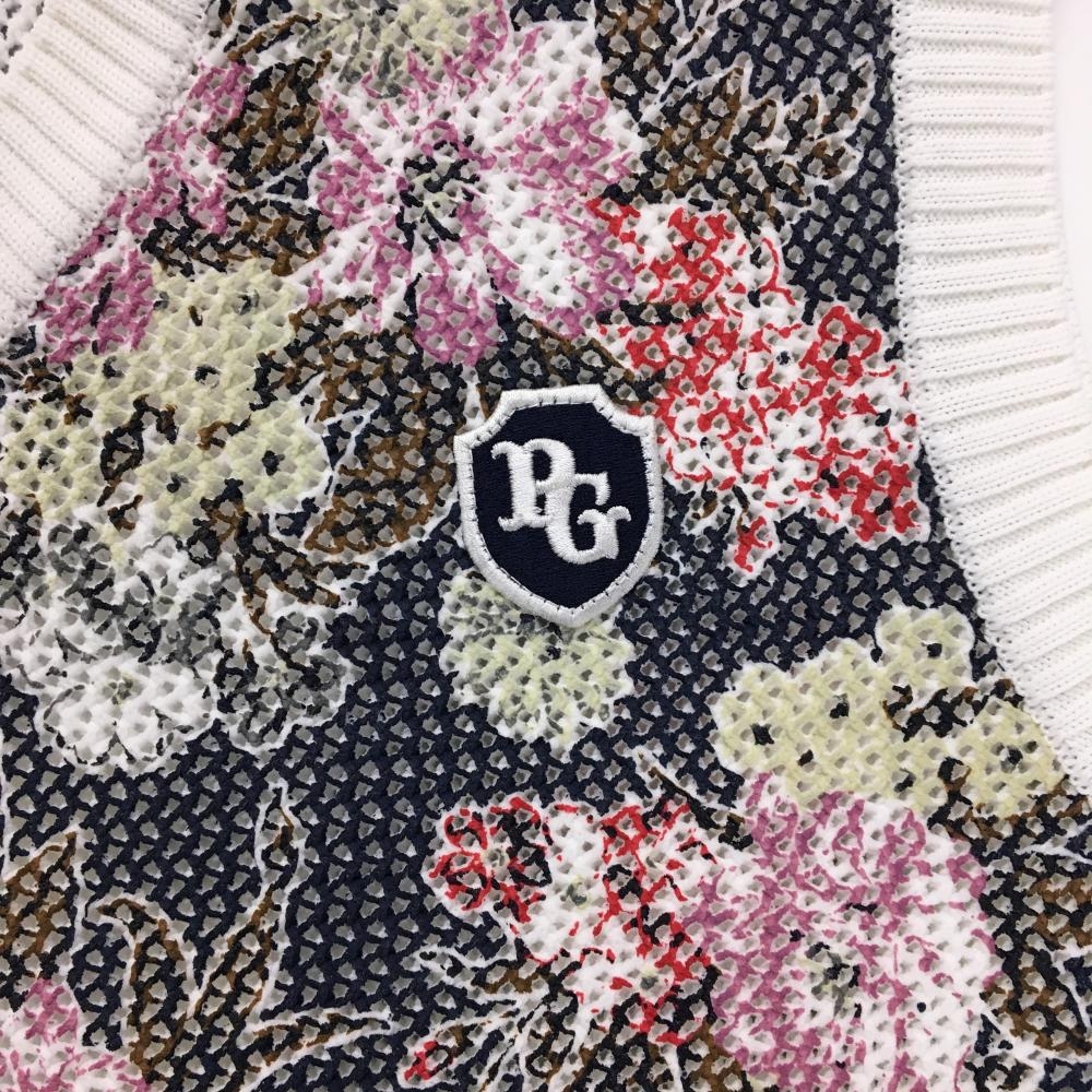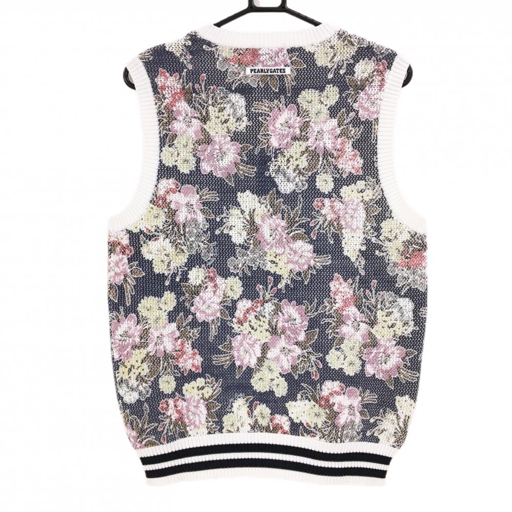 【新品】パーリーゲイツ ニットベスト ネイビー×白×マルチカラー 花柄 メッシュ調 Vネック メンズ 5(L) ゴルフウェア PEARLY GATES
